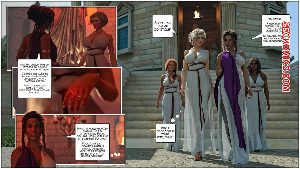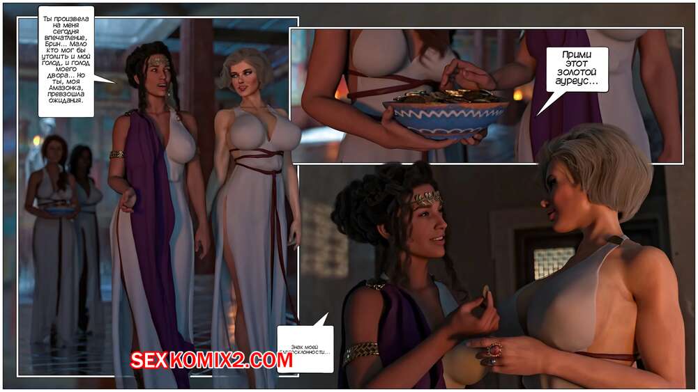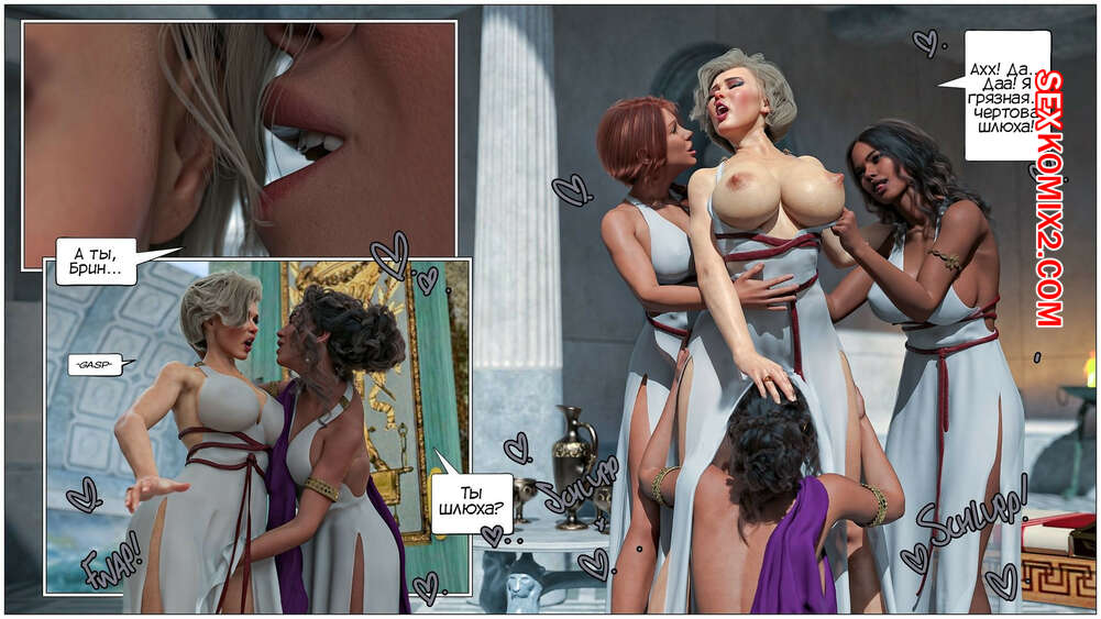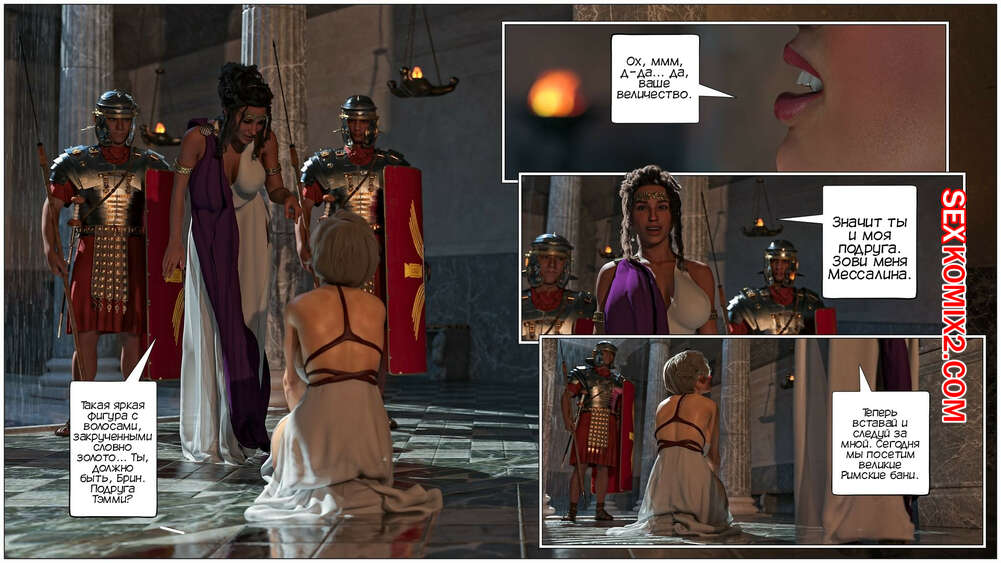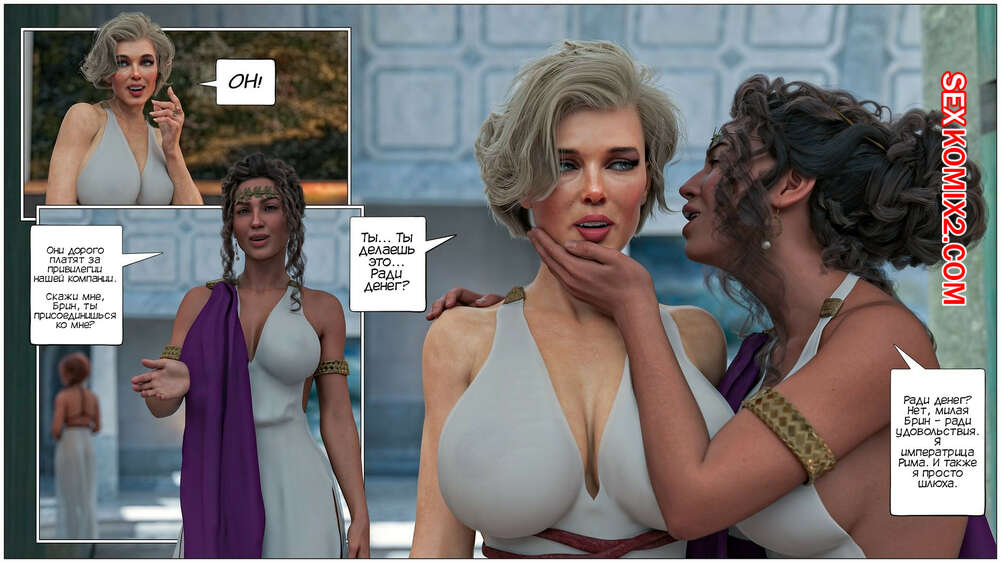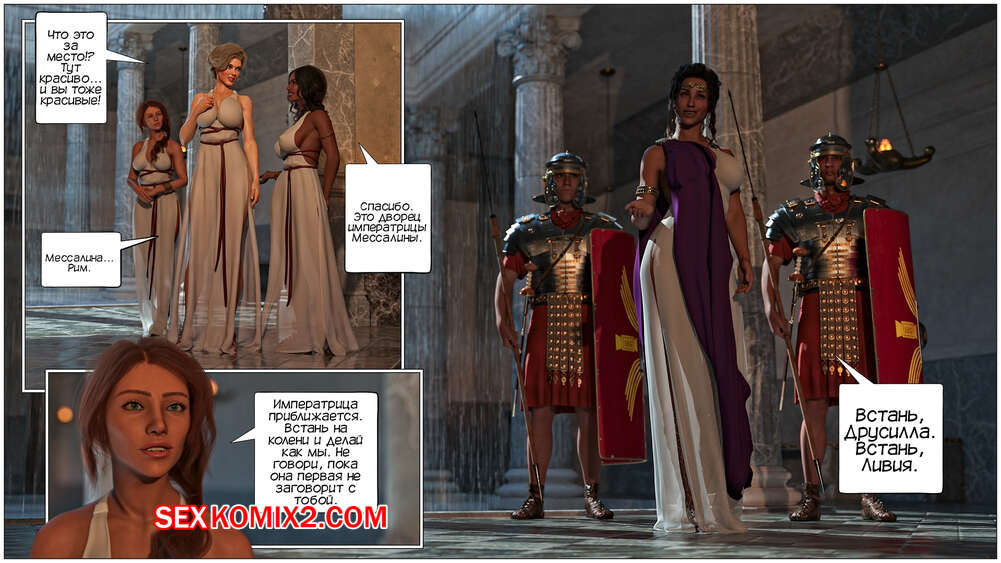 Порно комикс Кольцо Римской Императрицы. Часть 3. The Ring of the Roman Empres. Tab109 Две горячие красотки Друсила и Ливия разбудили Брин, которая оказалась во дворце Месалинны. К ним пришла царица, чтобы поприветствовать свою новую гостью и устроить ей невероятную еблю.