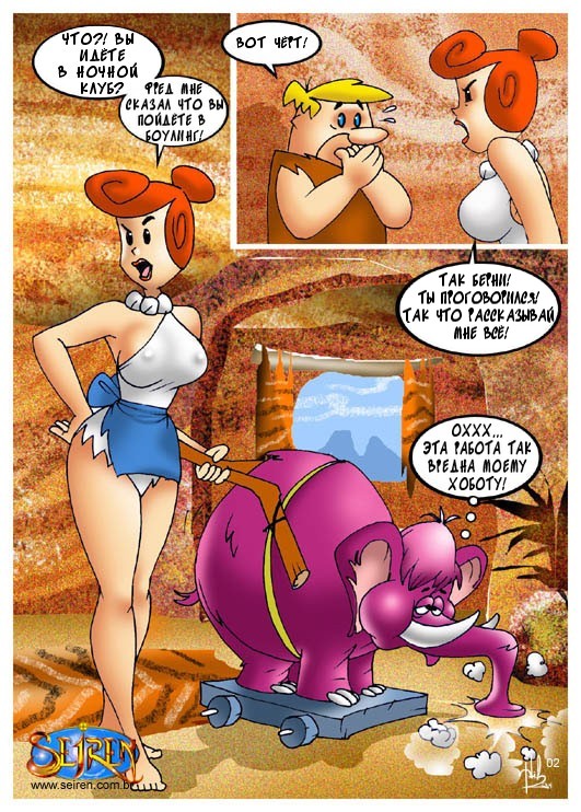 Порно комикс «Флинстоуны (The Flintstones)». Смотрите комикс онлайн пародия на знаменитый мультфильм. Берни и Фред собрались в тайне от своих жен сходить в ночной клуб, но случайно проболтались. И их сексапильные женщины решили тоже сходить в этот клуб, но чтобы мужья их не узнали, они надели маски. В то время, когда парни уже во всю веселились и прилично выпив, заказали проституток, им привели их жен. Охранник на входе по ошибке перепутал их со шлюхами. И мужья думаю, что это чужие девушки принялись трахать своих собственных жён.