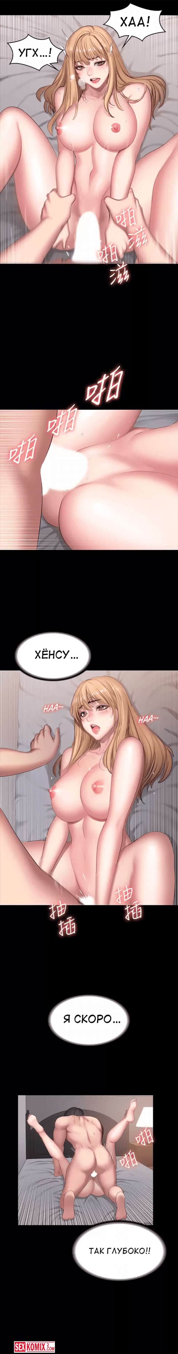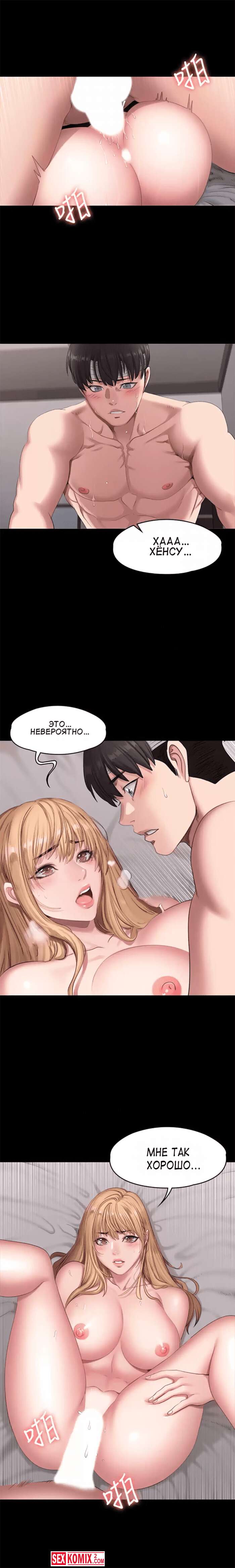 Порно комикс Фитнес. Часть 60. Fitness. Парень стал решительным, он положил девушку на кровать, она не ожидала, что он может быть таким агрессивным в сексе. Просто он уже не мог ждать.