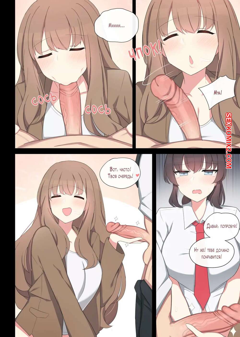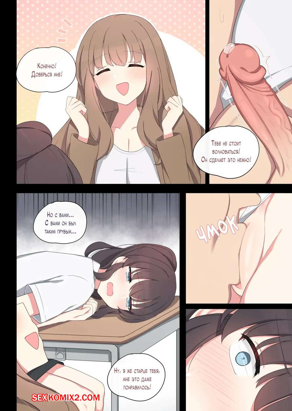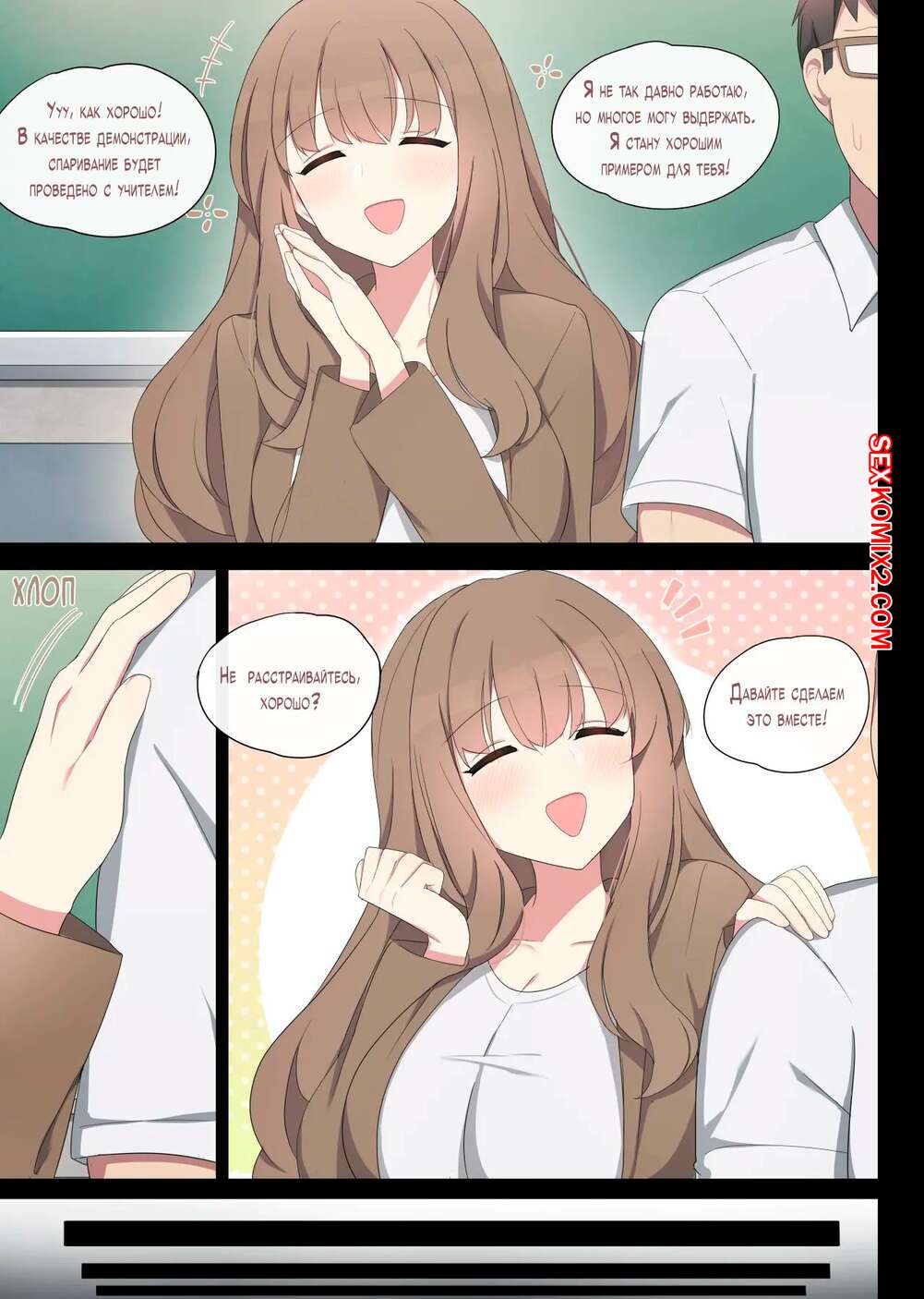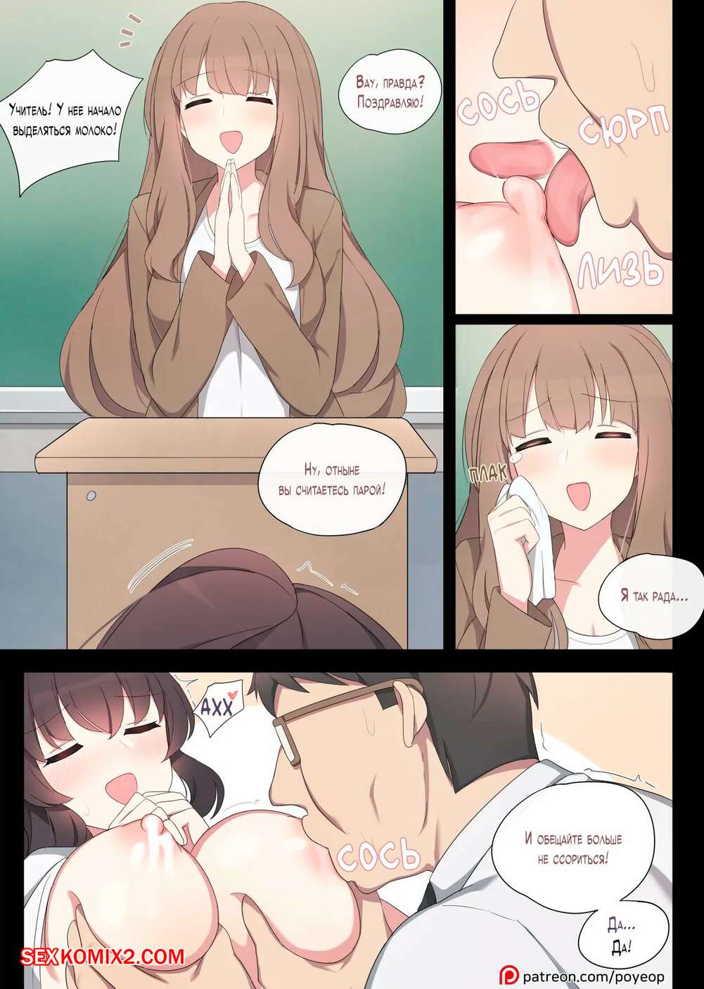 Порно комикс Практика спаривания. Часть 2. Mating Practice. Poyeop Горячая брюнетка была очень возбуждена и решила повеселиться со своим учителем. Она разделась и возбудила парня шикарным телом, после чего дала ему выебать свою пизденку.