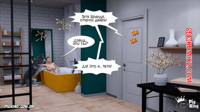 Порно комикс Свекр дома. Часть 48. Father In Law At Home. CrazyDad3D Горячая милфа Бренда приняла ванну и к ней в спальню пришел Дэвид. Он стал ласкать большие сиськи тети, после чего она раздвинула ножки и дала парню себя выебать.