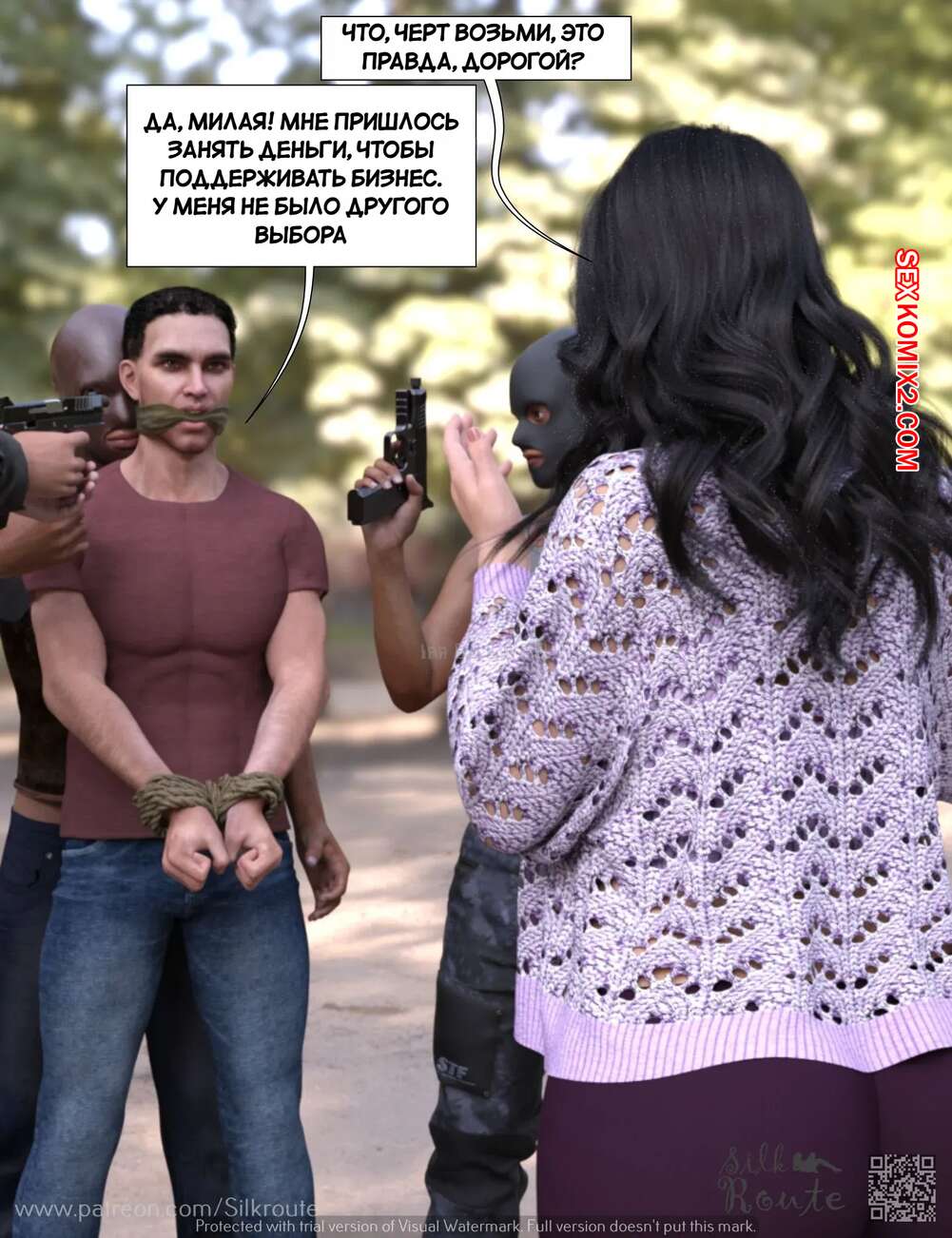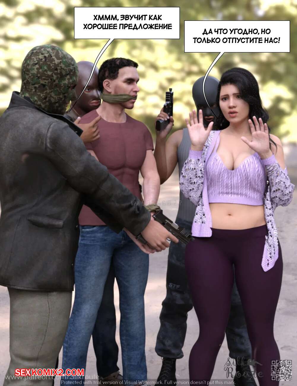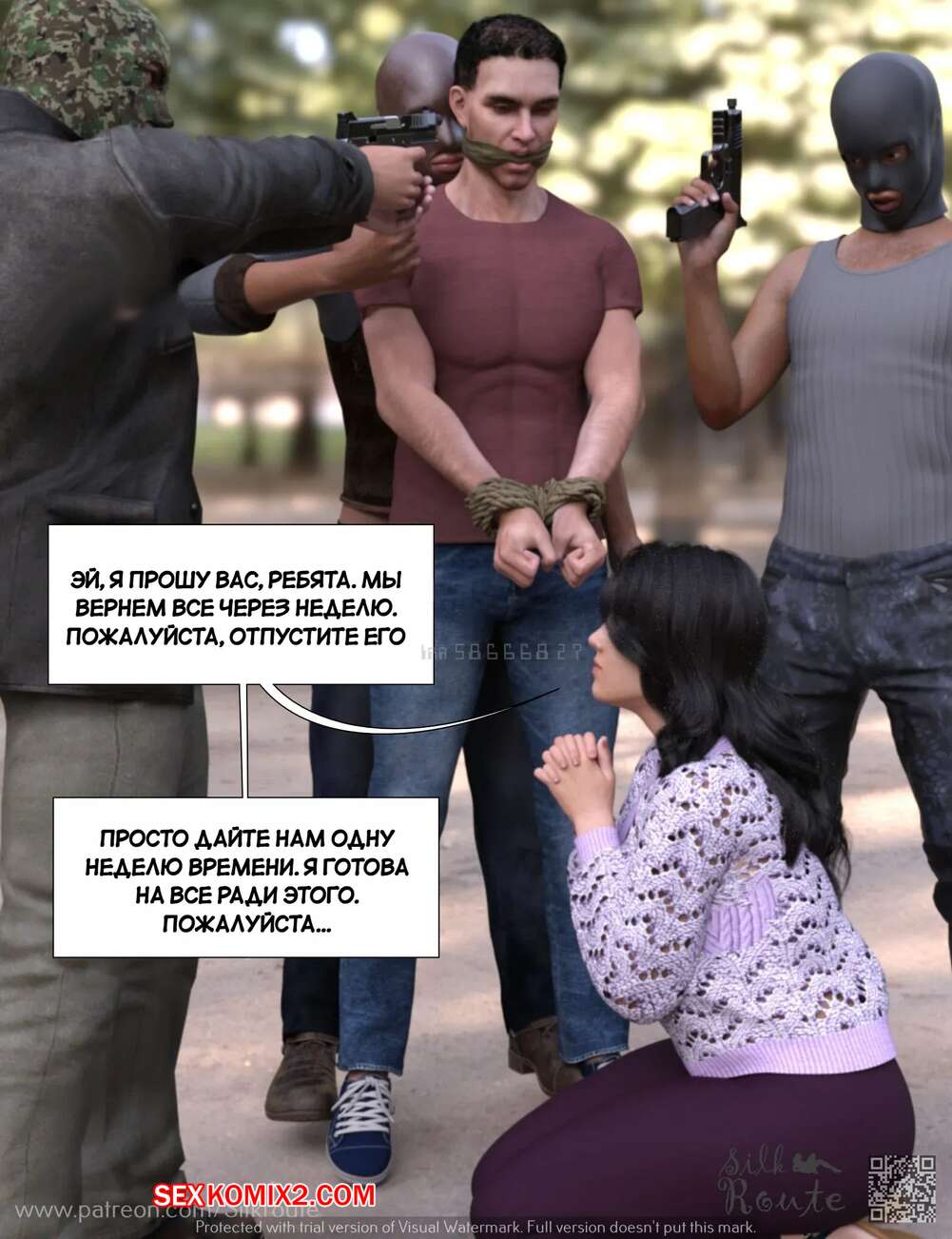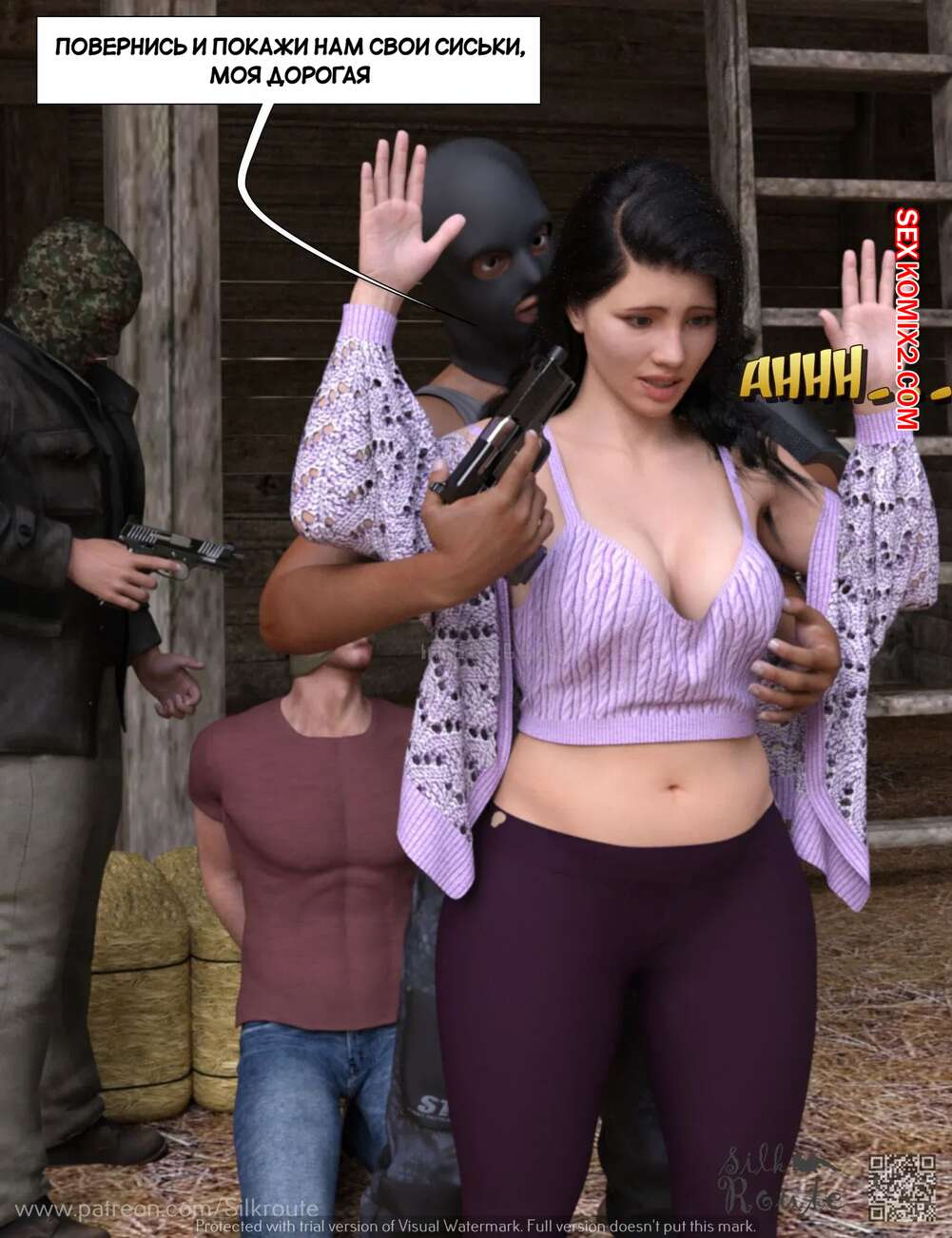 Порно комикс Трахни мою жену. Bang My Wife. Silk Route, Ira Raman Парень давно мечтал стать куколдом, поэтому он привез свою жену к нескольким темнокожим парням, которых он нанял. Они выебали красотку на глазах ее мужа, от чего он получил удовольствие.