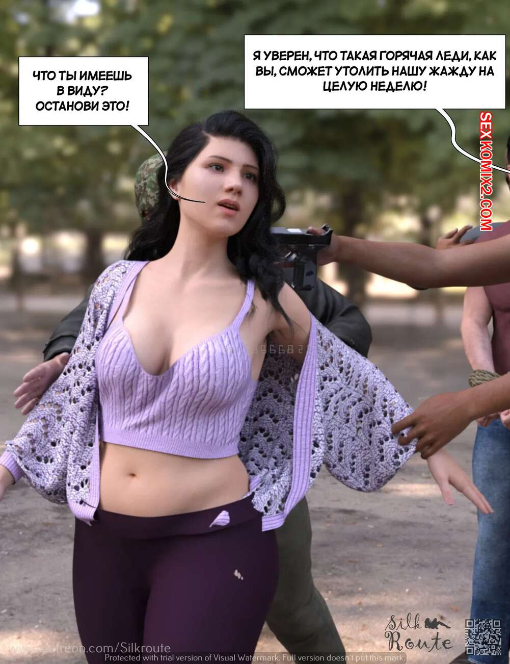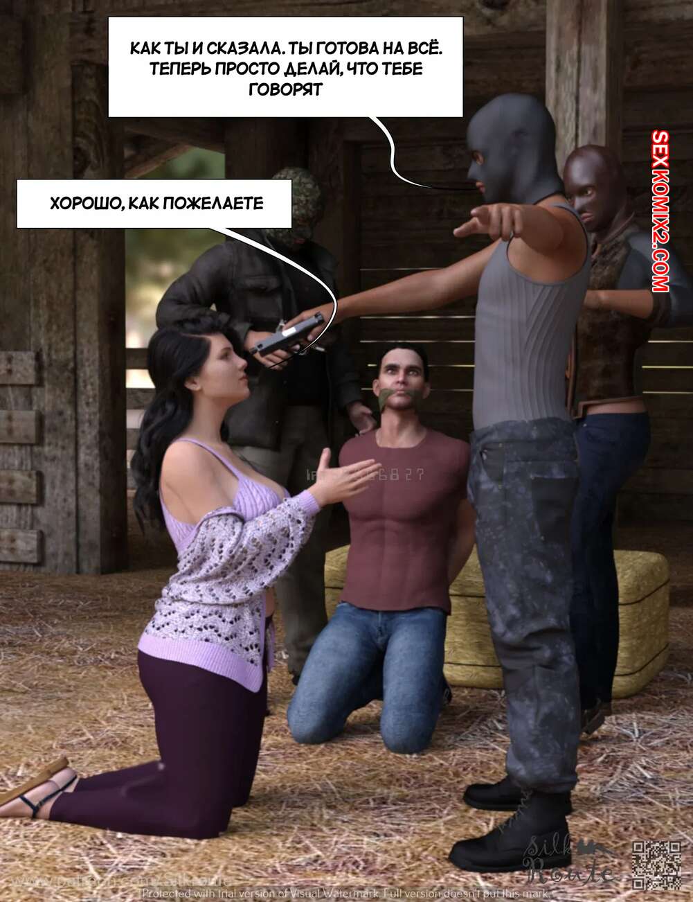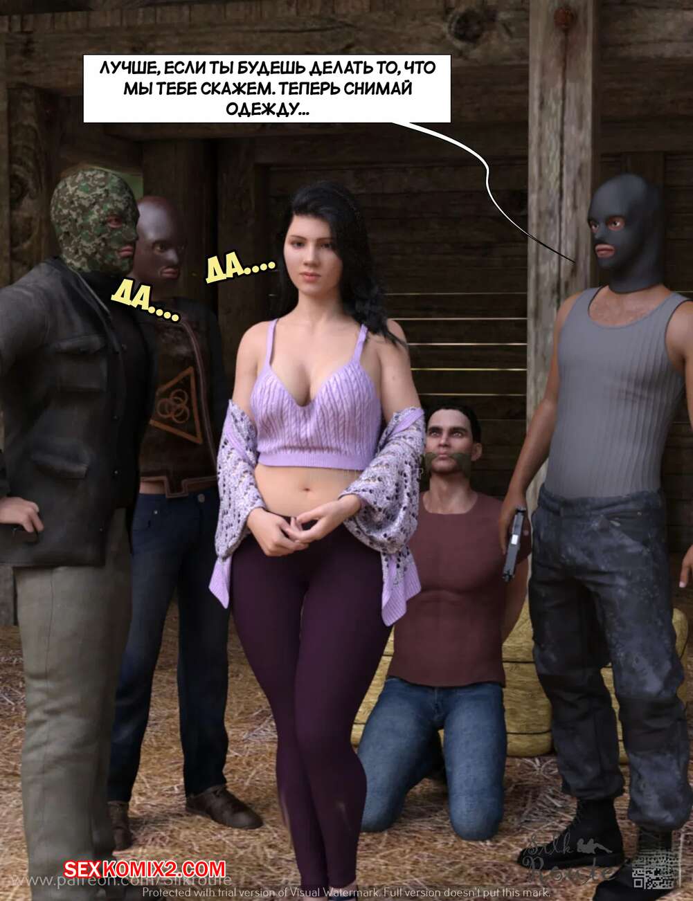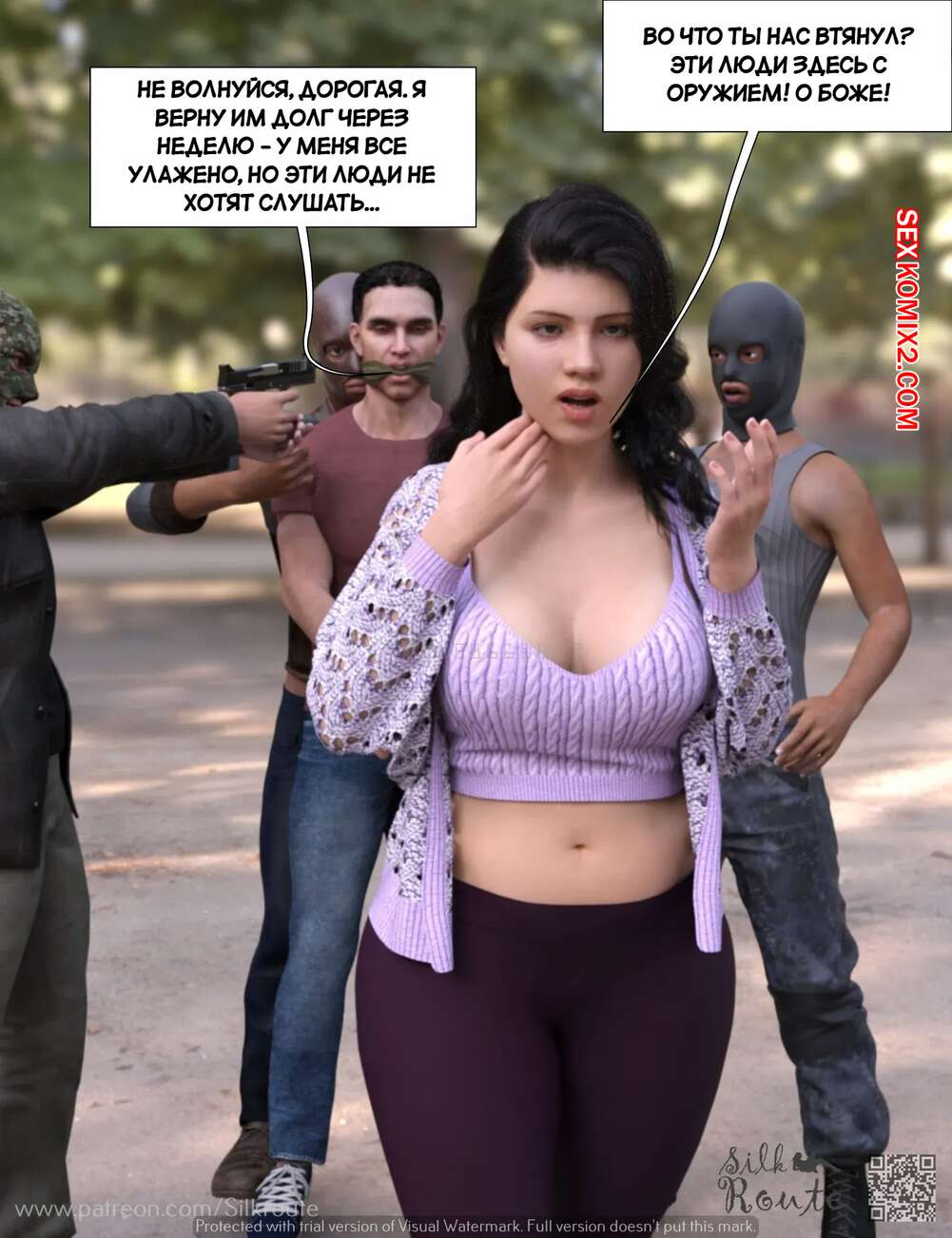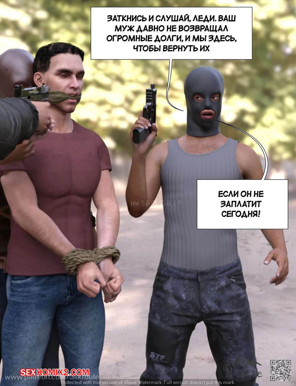 Порно комикс Трахни мою жену. Bang My Wife. Silk Route, Ira Raman Парень давно мечтал стать куколдом, поэтому он привез свою жену к нескольким темнокожим парням, которых он нанял. Они выебали красотку на глазах ее мужа, от чего он получил удовольствие.