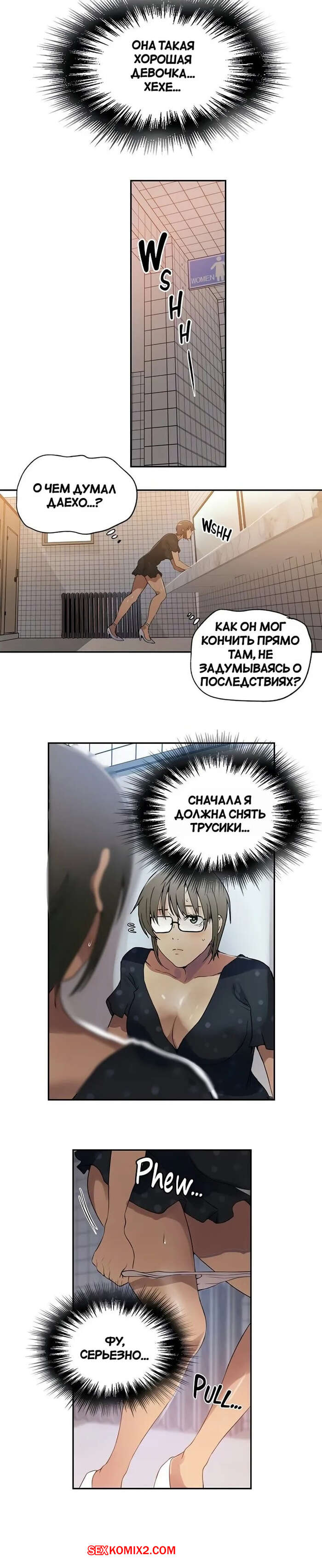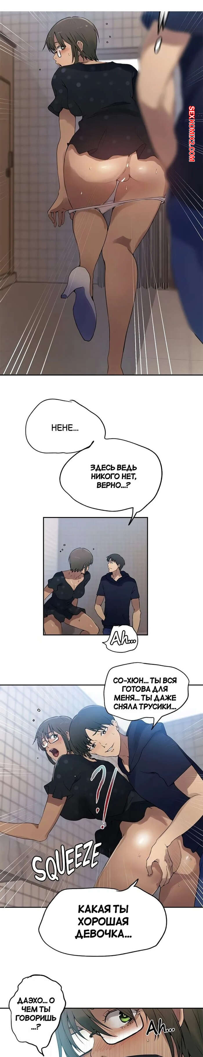 Порно комикс Тайное обучение. Часть 240. Secret Class Выйдя из кинозала парень с девушкой отправиться в туалет. Красотка сняла трусики и раздвинула ножки, чтобы ее дружок как следует выебал ее пизденку, доставляя девушке огромное удовольствие.