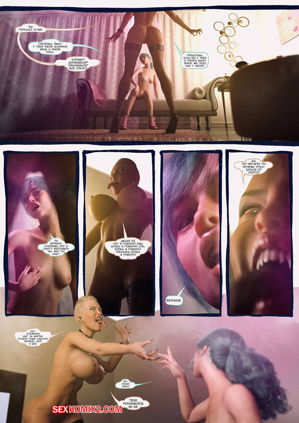 Порно комикс Ад манит. Части 16 и 17 и 18. Hell Beckons. JacktheMonkey Горячие милфы были очень возбуждены и решили повеселиться. Они разделись и стали страстно целоваться, после чего занялись страстными лесбийскими играми, желая кончить.