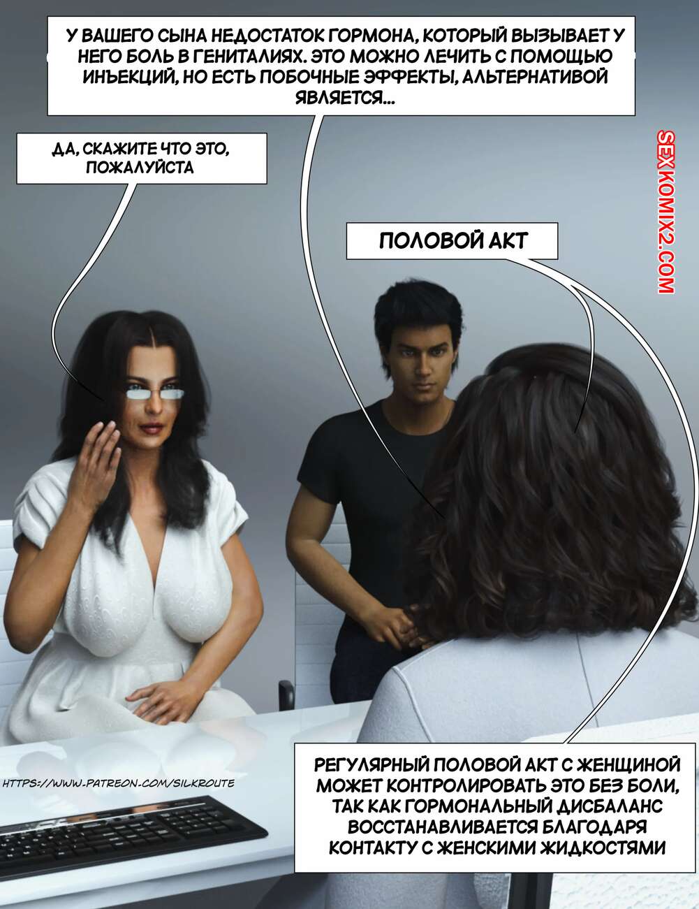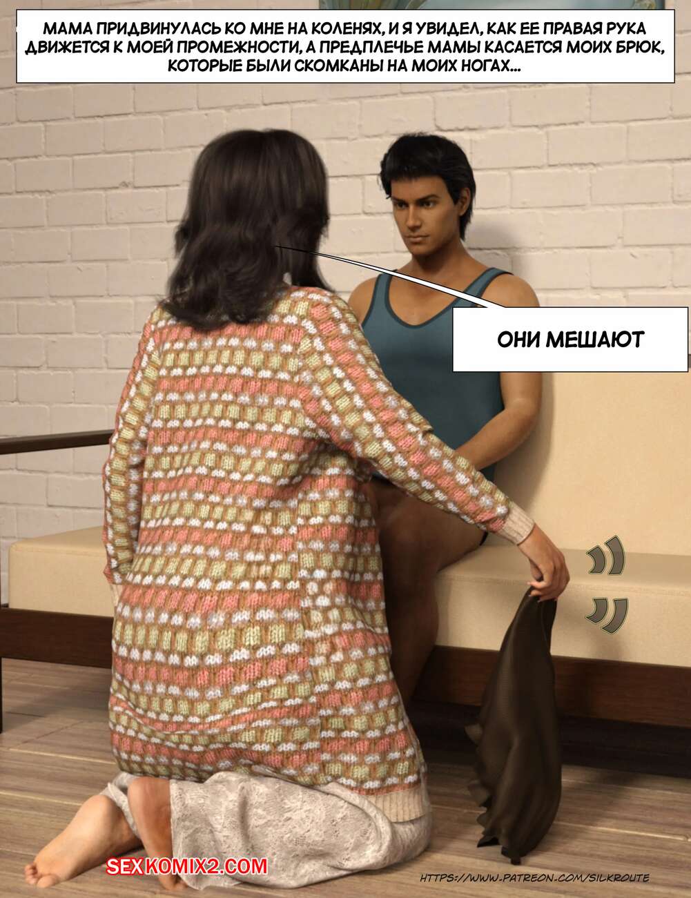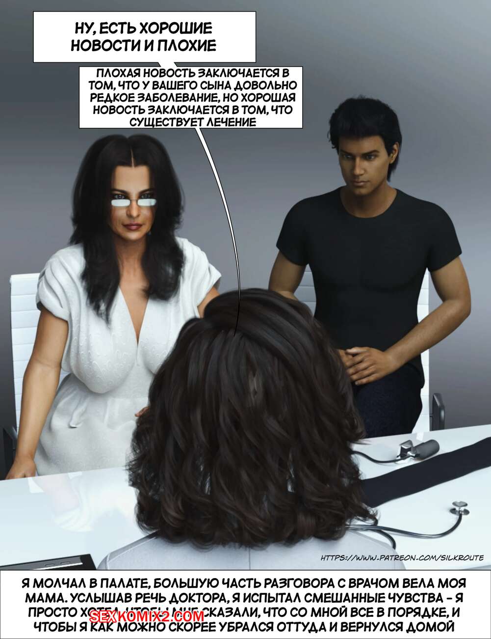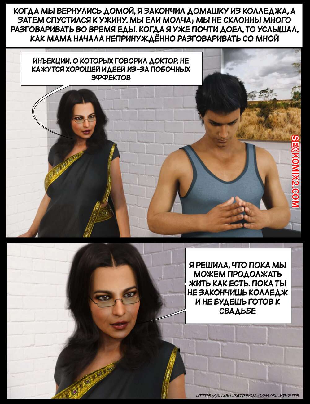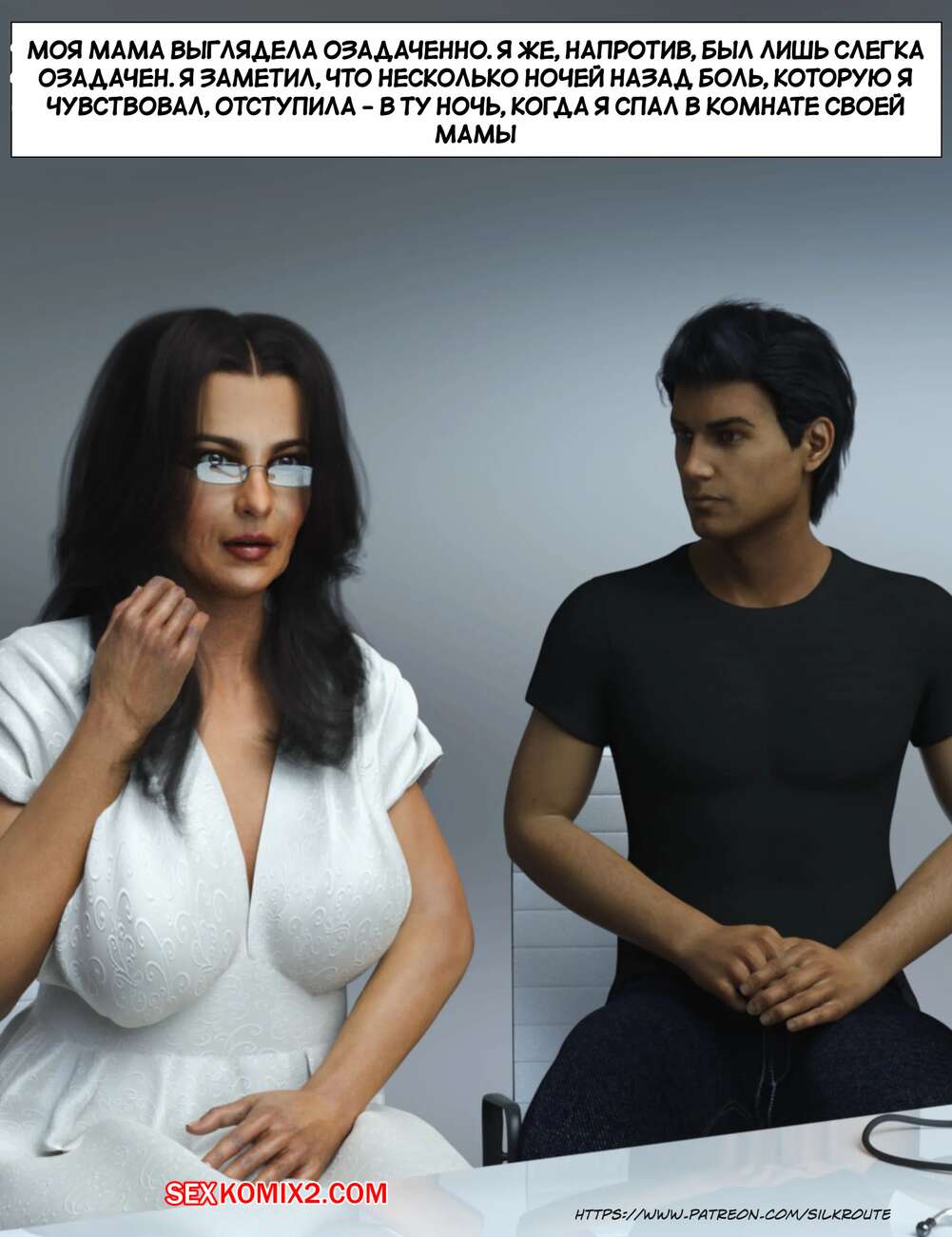 Порно комикс Прошу, помоги мне расслабиться. Часть 7. Please Relieve Me. Silk Route, Ira Raman Горячая милфа продолжает помогать своему сыну снимать напряжение. Красотка разделась и возбудила парня шикарным телом, после чего стала сосать и дрочить его член.