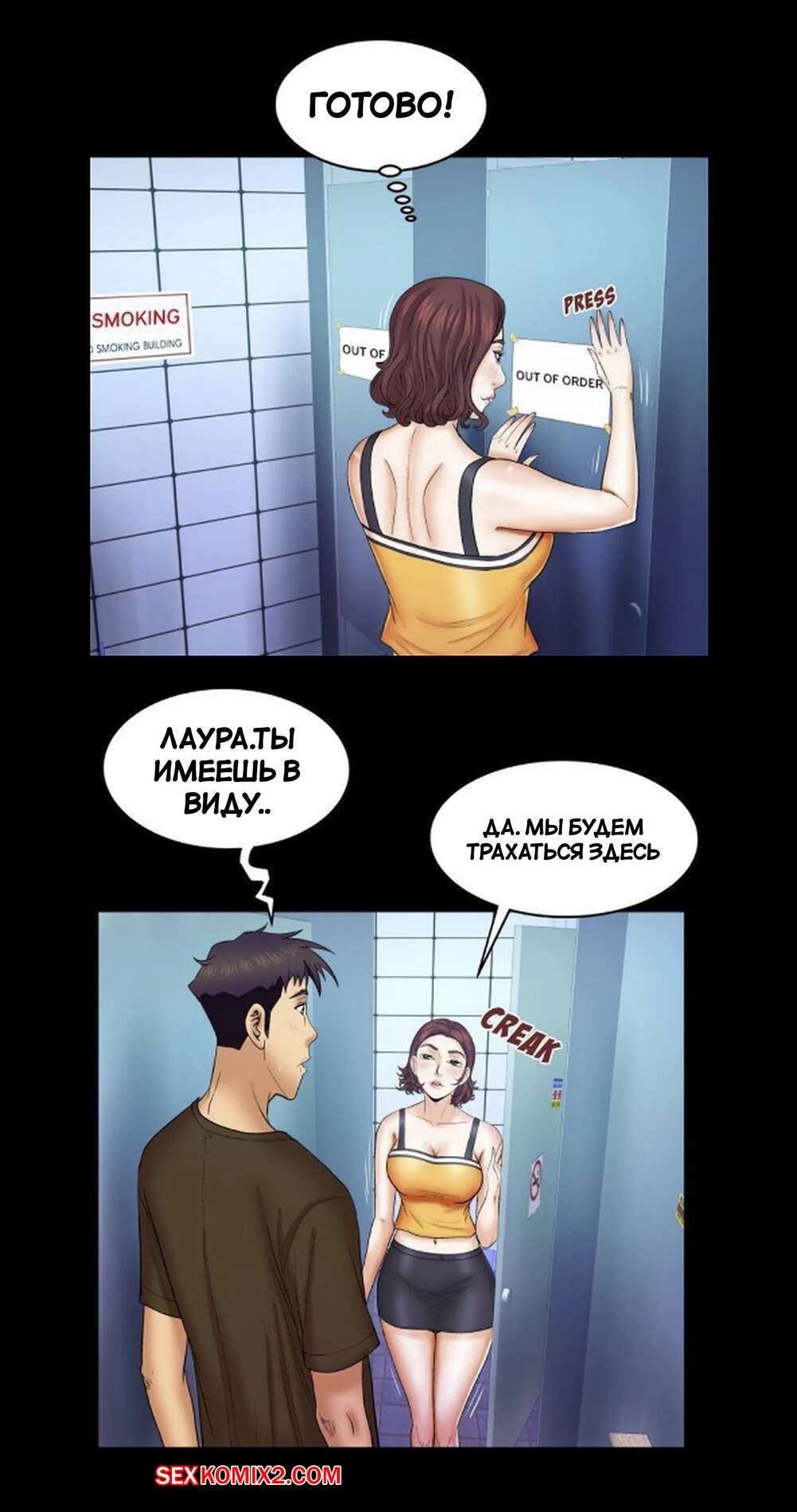 Порно комикс Моя тетя. Без цензуры. Часть 30. My Aunt. Toomics Во время прогулки парень с девушкой решили повеселиться. Они отправились в общественный туалет, где девушка отсосала хуй парня и дала ему выебать свою пизденку.