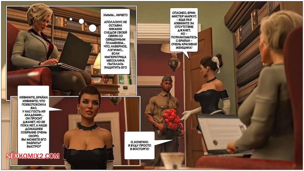 Порно комикс Кольцо Римской Императрицы. Часть 4. The Ring of the Roman Empres. Tab109 Горячая милфа Брин проснулась после невероятной ночи секса. Красотка встретилась с соседкой Тэмми и повезла ее в дом к мадам Маделон, чтобы познакомить ее с их деятельностью.