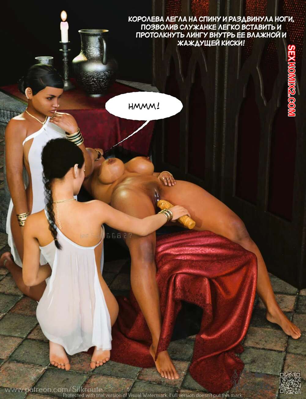 Порно комикс Королева Агоды. Часть 1. The Queen Of Agoda. Silk Route, Ira Raman Горячие красотки раздеваются перед темнокожим парнем, чтобы ублажить его. Сучки встают на колени и сосут большой хуй своего дружка, после чего дают ему себя выебать.
