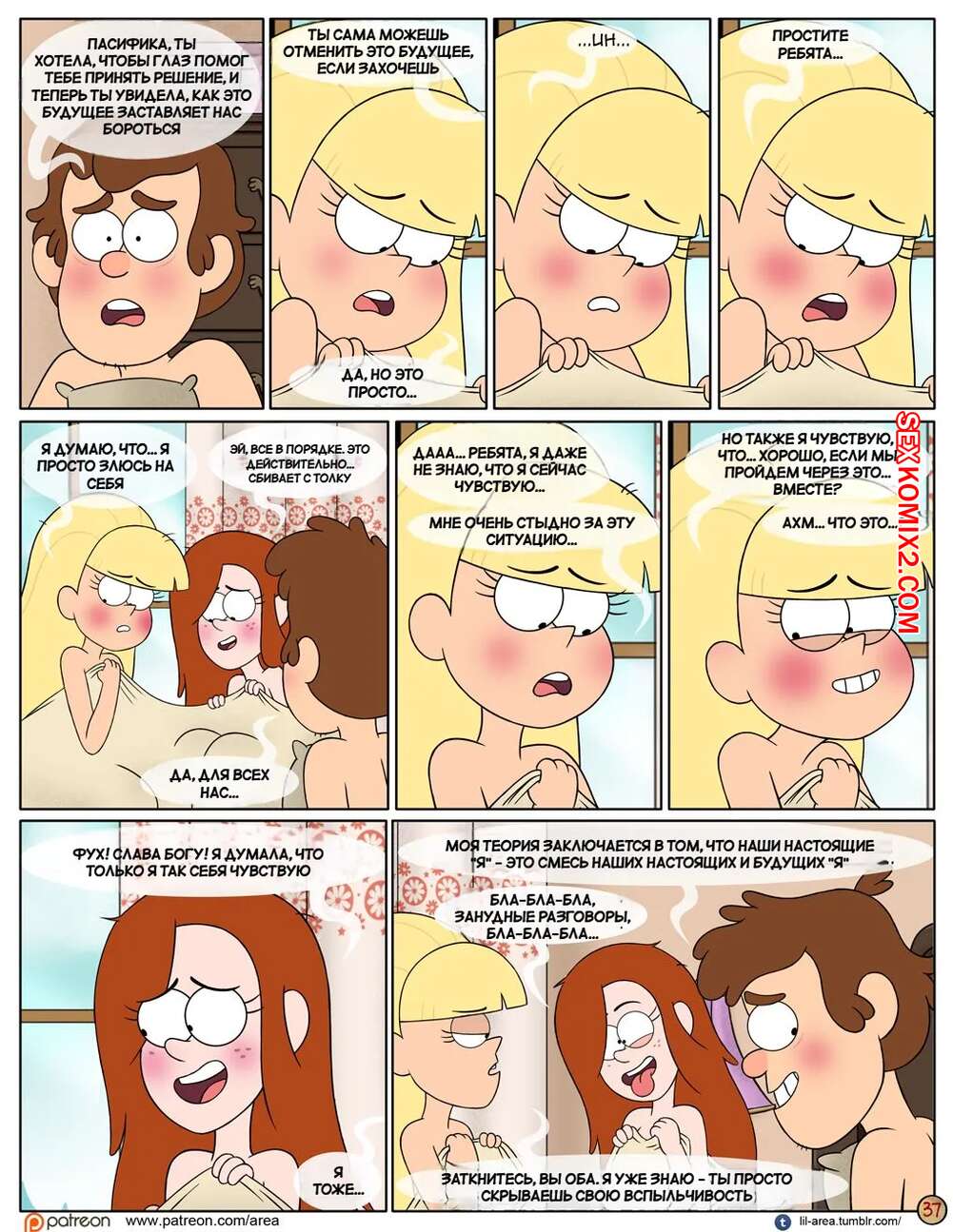 Порно комикс Gravity Falls. Следующим летом. Next Summer. Area Загадочным образом Диппер, Пасифика и Венди оказываются в будущем в своих взрослых телах. Друзья решают воспользоваться моментом и заняться групповым сексом, получая от невероятные удовольствия от первого опыта.