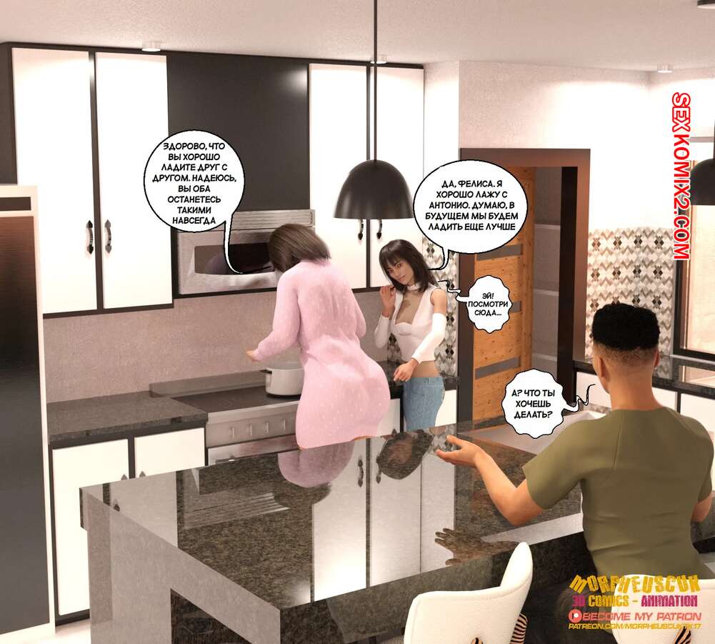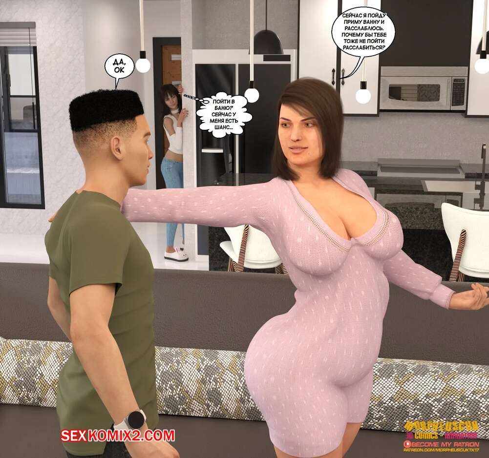 Порно комикс Бесстыдный. Часть 2. Shameless. Morpheuscuk Юная девушка решила помочь Антонио трахнуть Фелису. Она подкинула ей таблетки, который возбудили милфу, поэтому, когда красотка увидела парня в ванной, раздвинула ножки перед ним и дала себя выебать.