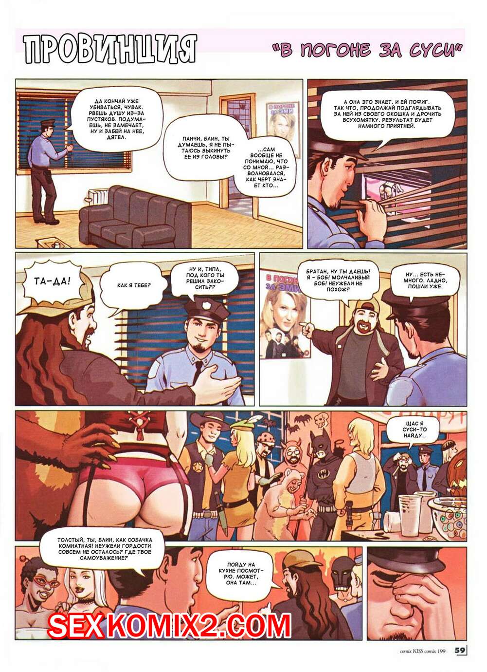 Порно комикс Провинция. В погоне за Суси. Парням нужно найти девушку по имени Суси, но они не знают как она выглядит. Они попали в какой-то дом, где проходят оргии, а Суси там была в центре внимания.