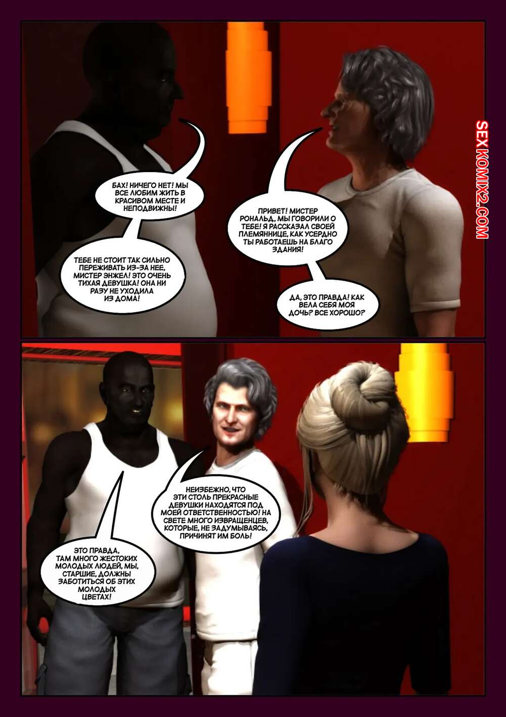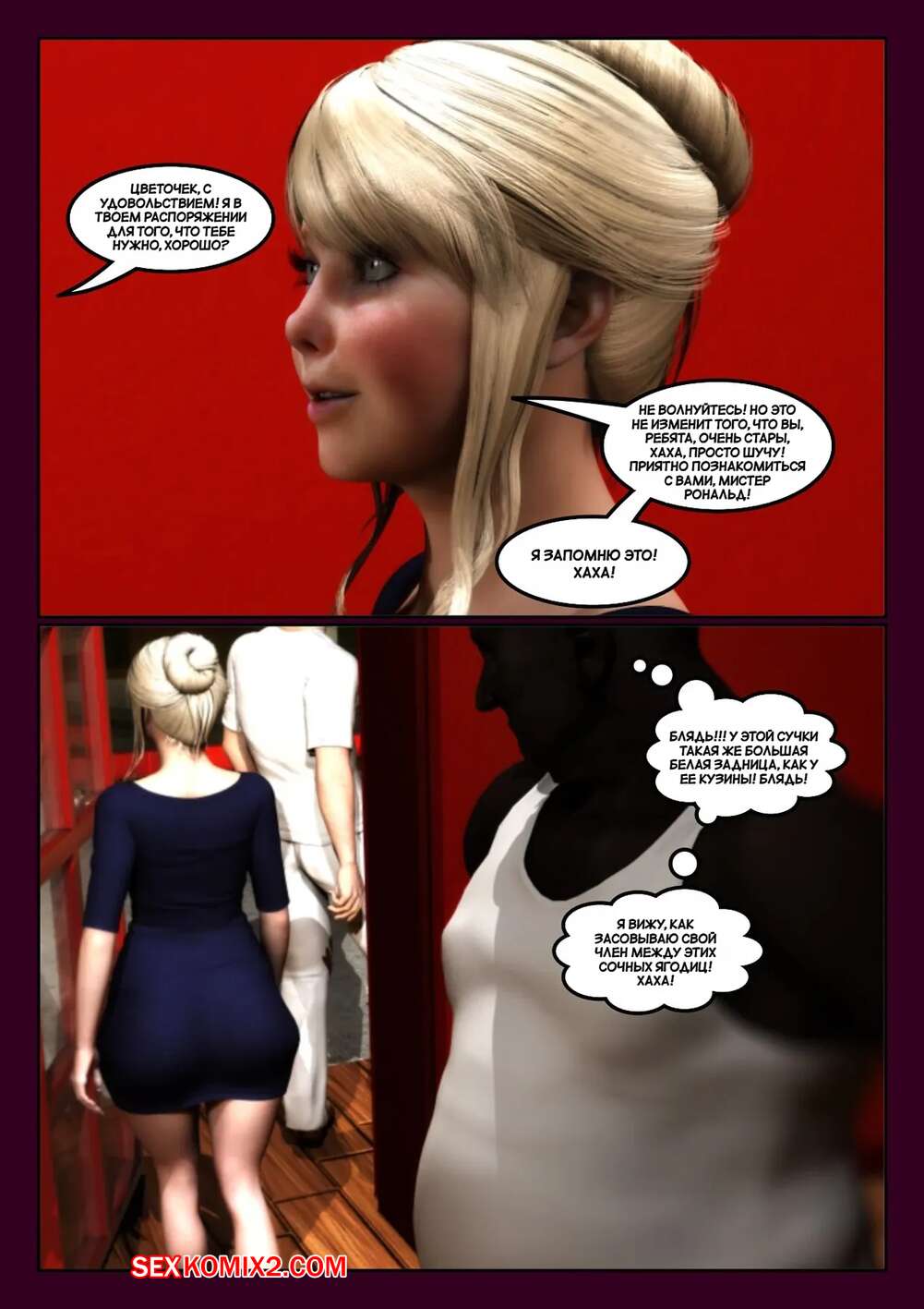 Порно комикс Уборщик. Часть 2. The Janitor. Moiarte3D Горячая красотка с шикарным телом разделась перед темнокожим парнем и возбудила его своими формами. Красотка оседлала большой хуй парня и дала ему себя хорошенько выебать.