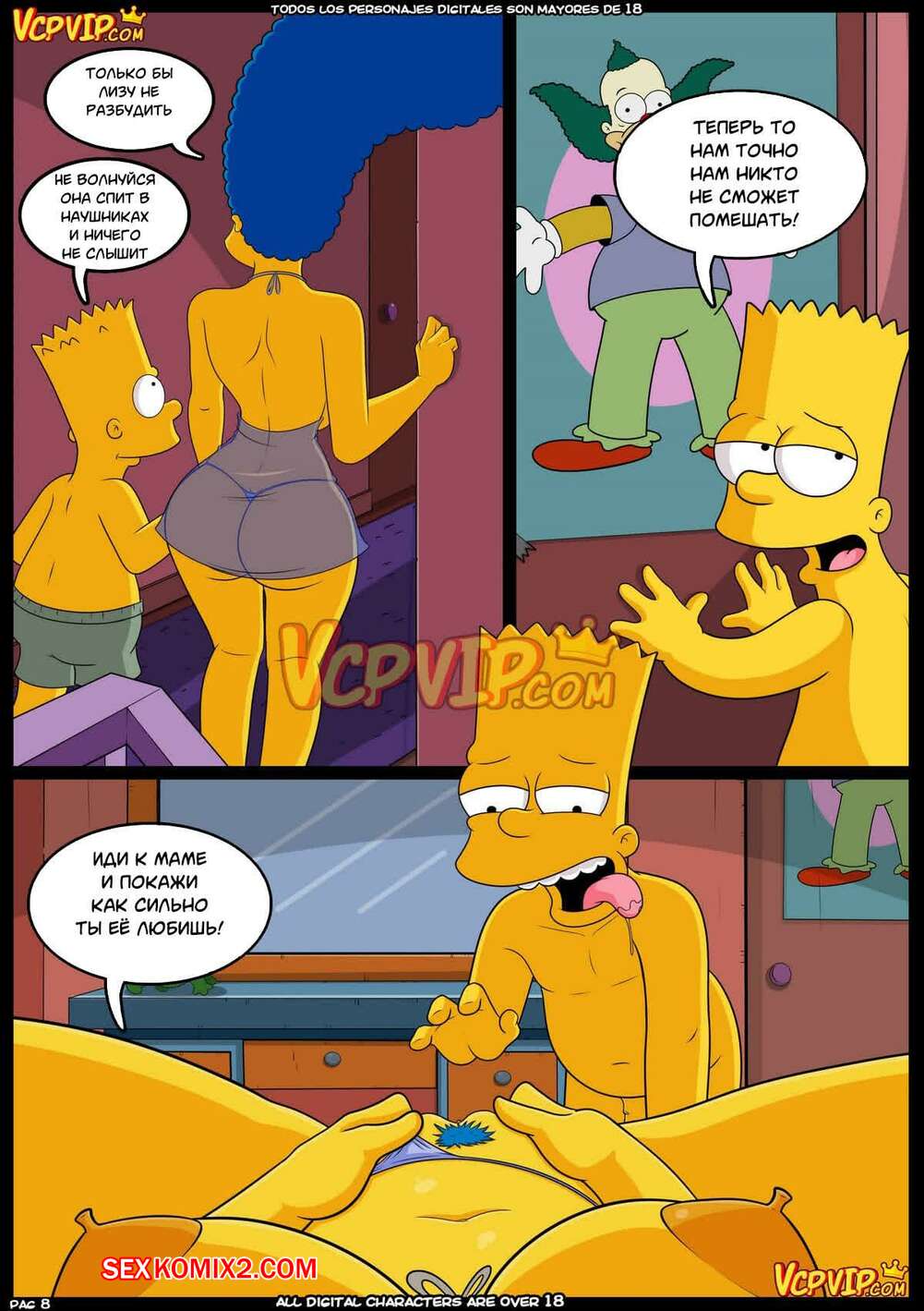 Порно комикс The Simpsons. Мама. Mom. Croc Горячая милфа пришла в комнату к сыну, чтобы попрощаться с ним перед тем, как навсегда уйти. Красотка услышала, что сыну снятся эротические сны о ней, поэтому решила отсосать хуй парня и дать ему себя выебать во все дырочки.