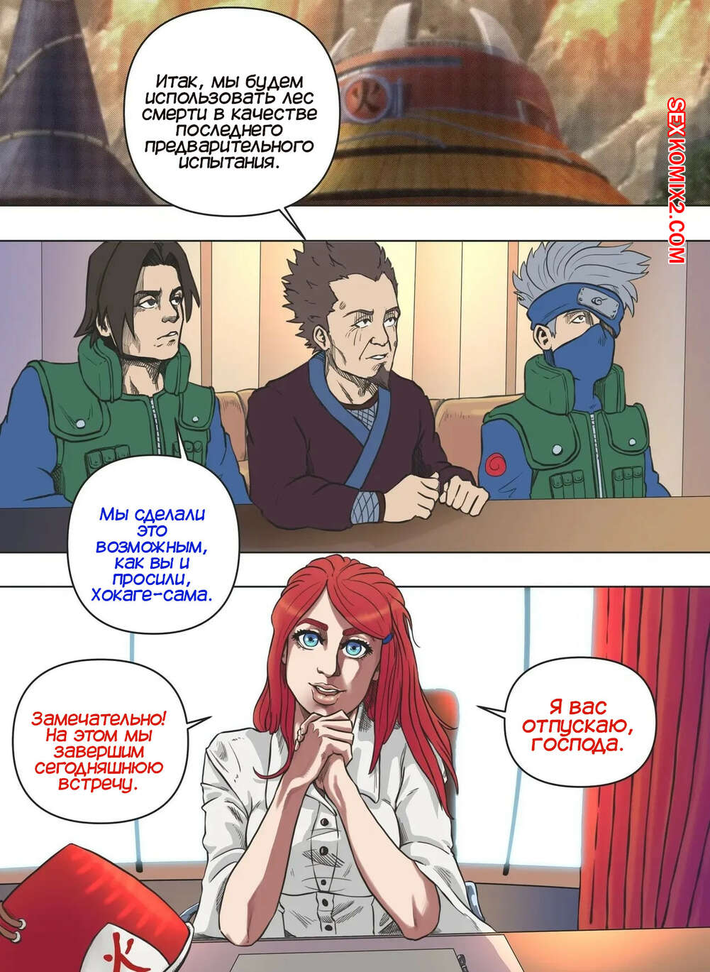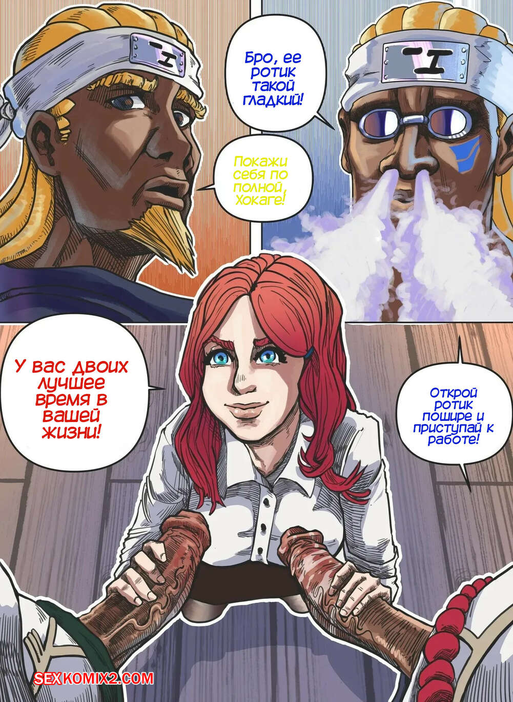 Порно комикс Наруто. Кушина пятый Хокаге. Kushina The Fifth Hokage. DaveTheBiggest Горячая красотка Кушина стала Хокаге и создала альянс, для защиты деревни. К девушке пришли два темнокожих парня, чтобы повеселиться с девушкой и выебать ее во все дырочки.