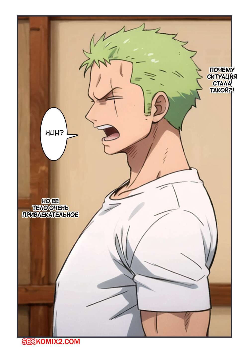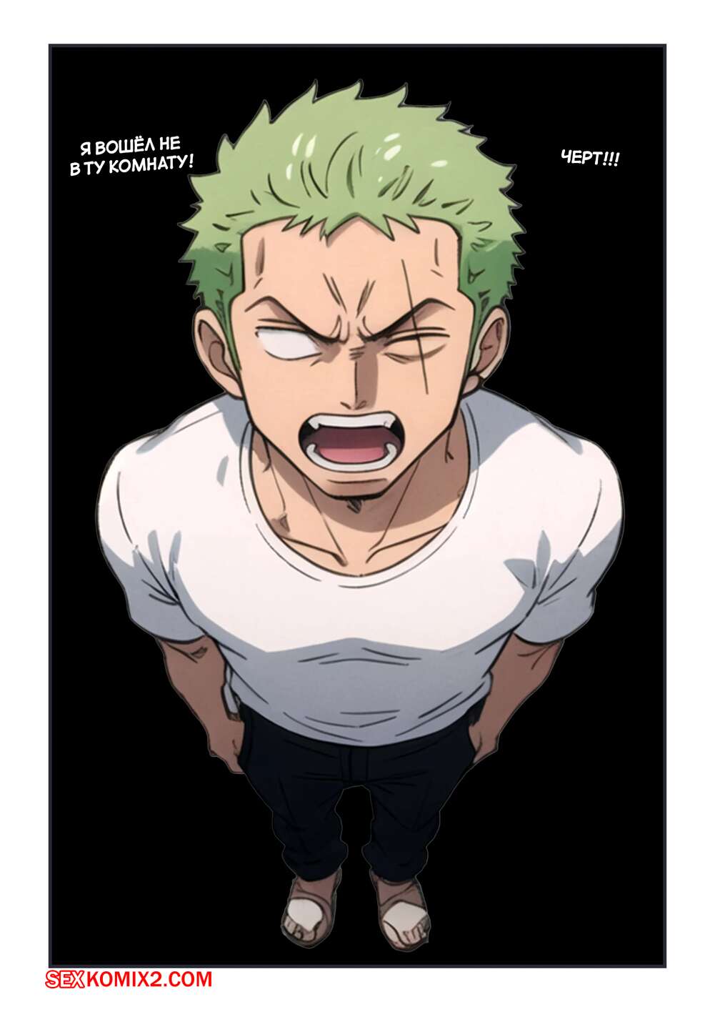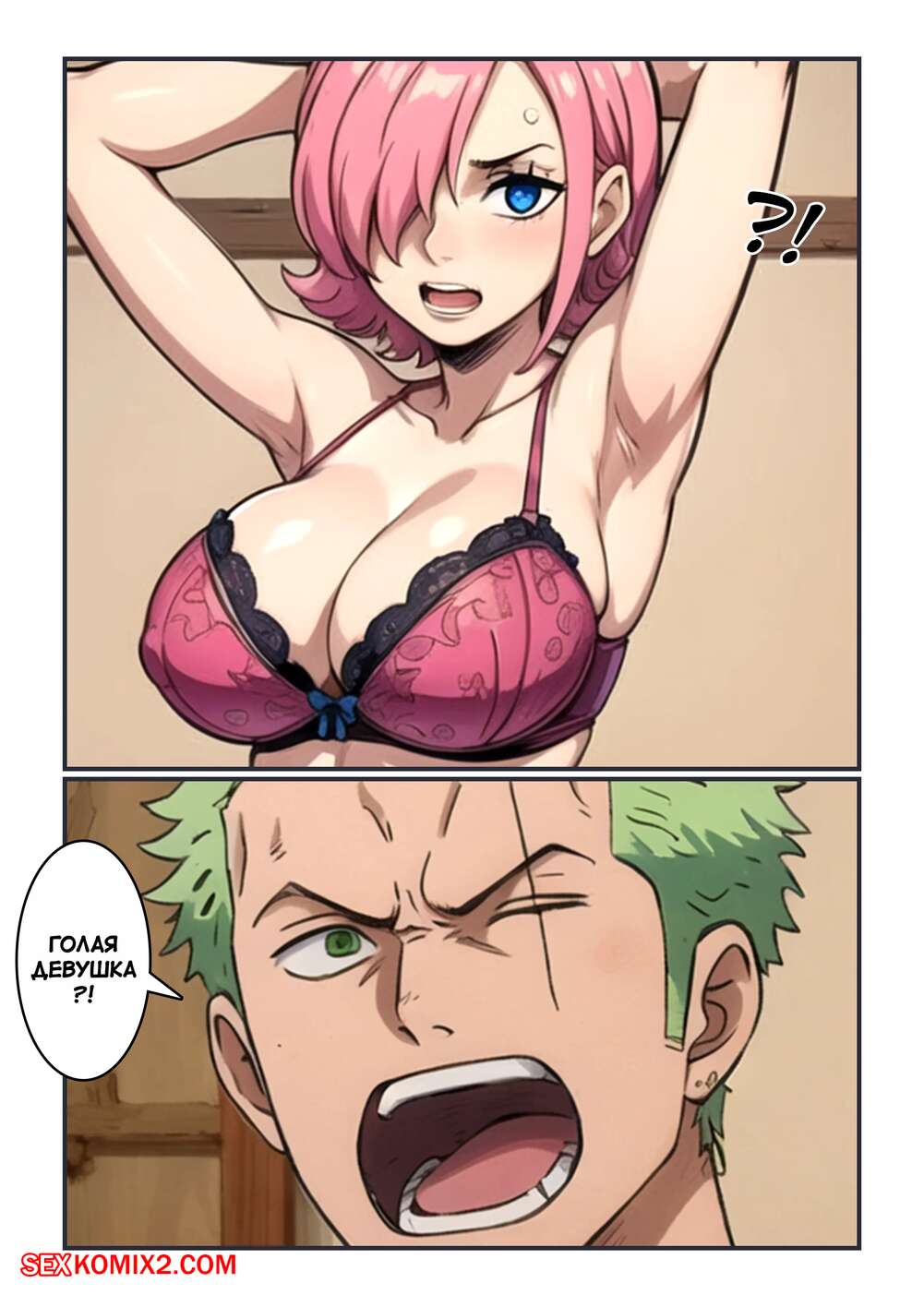 Порно комикс One Piece. Зоро вошел не в ту комнату. Zoro entered the wrong room. Kahoo Зоро ошибся дверью и вошел в комнату к голой девушке. Она не стала устраивать скандалов, а дала парню потрогать свои большие сиськи и дала выебать свою пизденку.
