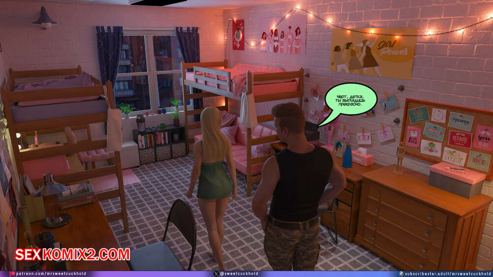 Порно комикс Намного больше, чем у моего парня. Дни колледжа. Часть 4. MrSweetCuckhold Майк продолжает соблазнять девушку своего соседа по комнате. Пейдж больше не может сдерживаться, поэтому пригласила Майка к себе в комнату, чтобы он лишил ее девственности.