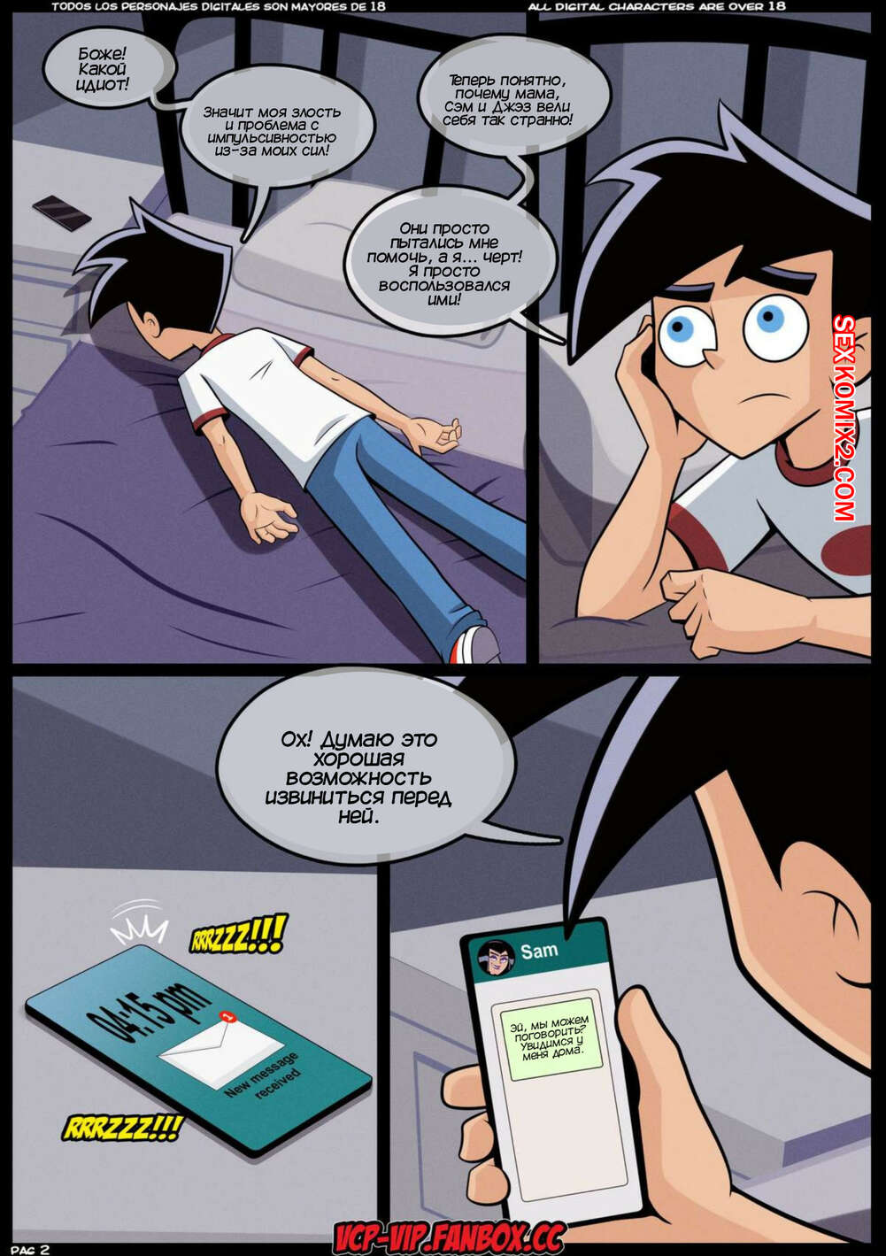 Порно комикс Дэнни призрак. Часть 4. Призрачное созревание. Ghost Puberty. Croc Дэнни отправился домой к Сэм, чтобы обсудить последние ситуации и извиниться. Девушка успокоила парня, после чего к ним присоединилась Паулина, чтобы заняться групповой еблей.