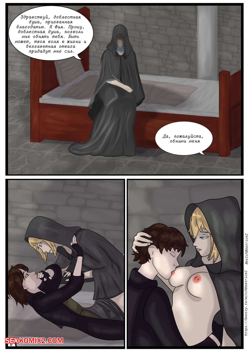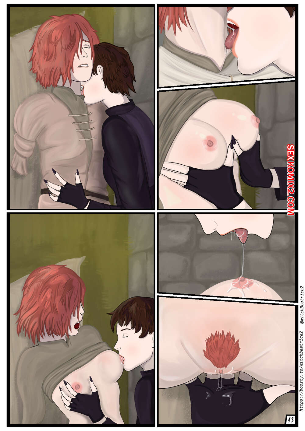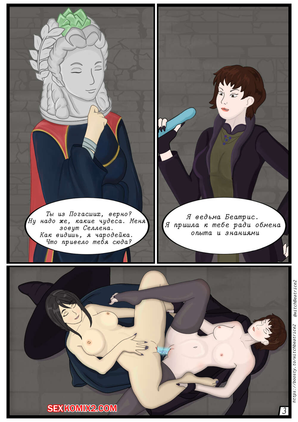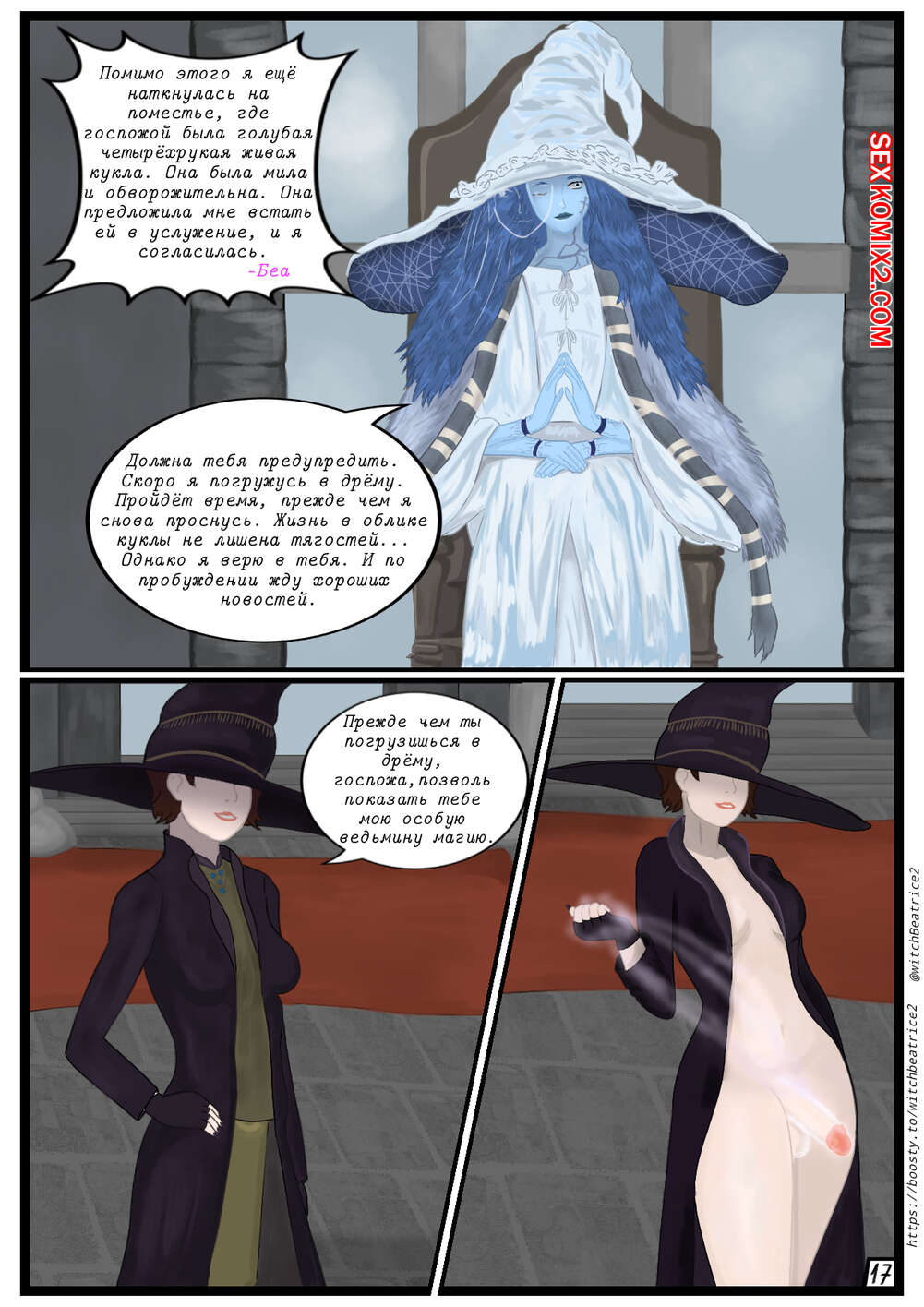 Порно комикс Беатрис в Междуземье. Beatrice in Limgrave. witch Beatrice Горячие красотки очень возбуждены и хотят трахаться. Они раздеваются и ласкают друг дружку, после чего занимаются страстной еблей, получая огромное удовольствие.