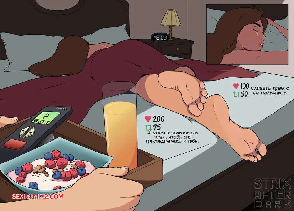 Порно комикс Пульт от приемной матери. Remote Control Stepmom. StrixAfterDark Молодой парнишка пользуется пультом, чтобы контролировать свою мачеху. Он переодел ее в костюм чирлидерши, после чего дал красотке подрочить свой хуй ножками, получив невероятное удовольствие.