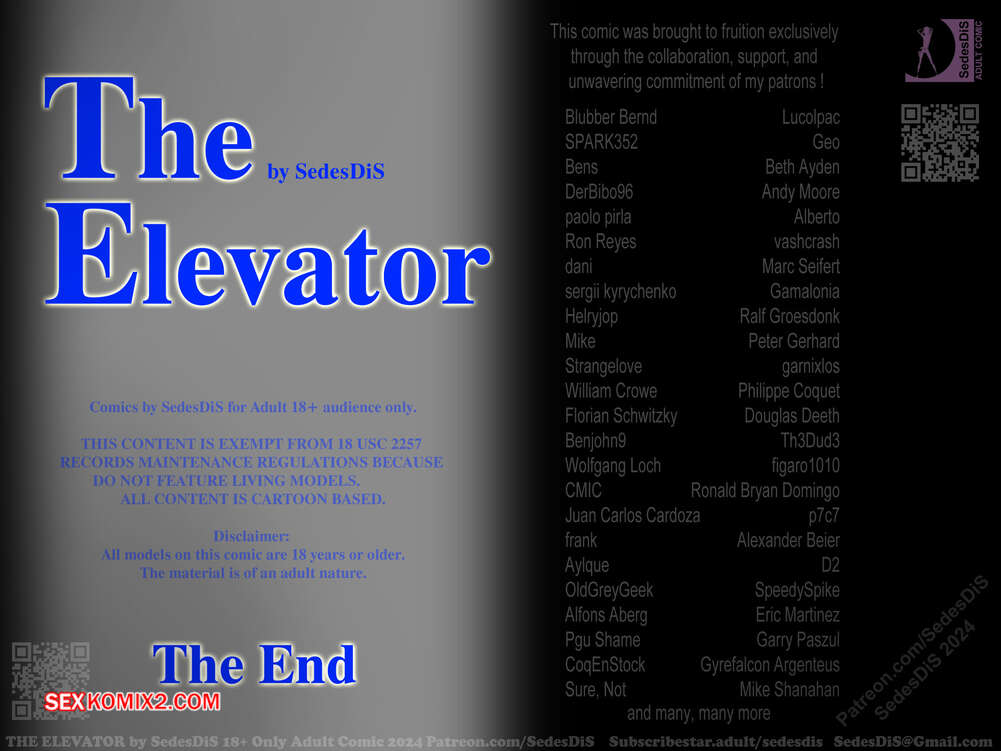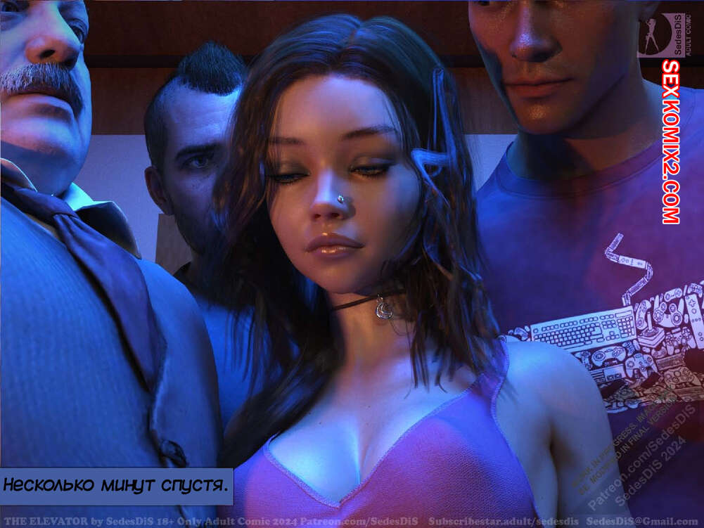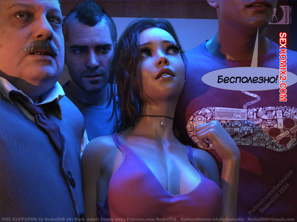 Порно комикс Лифт. The Elevator. SedesDiS Юная брюнетка зашла в лифт, где она оказалась наедине с несколькими мужиками. Они стали любоваться шикарным телом красотки, вызывая у нее стеснение, а затем лифт застрял..