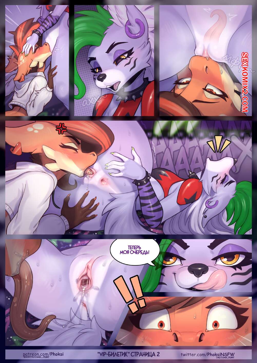 Порно комикс Five Nights at Freddys. VIP Билетик. PhoksiNSFW Две девушки фурри остались наедине и решили повеселиться. Красотки разделись и стали ласкать друг дружку, после чего занялись страстной лесбийской еблей, получив невероятное удовольствие.