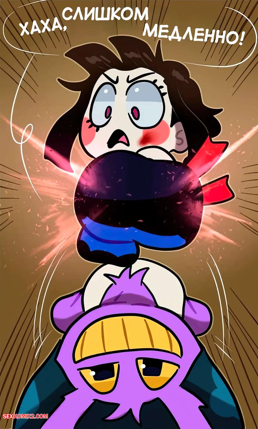 Порно комикс The Amazing Digital Circus. Удивительный цифровой бойцовский клуб. Aricueva Парень с девушкой вступили в схватку, в процессе чего оба возбудились. Девушка разделась и стала сосать большой хуй своего дружка, после чего дала ему себя выебать.