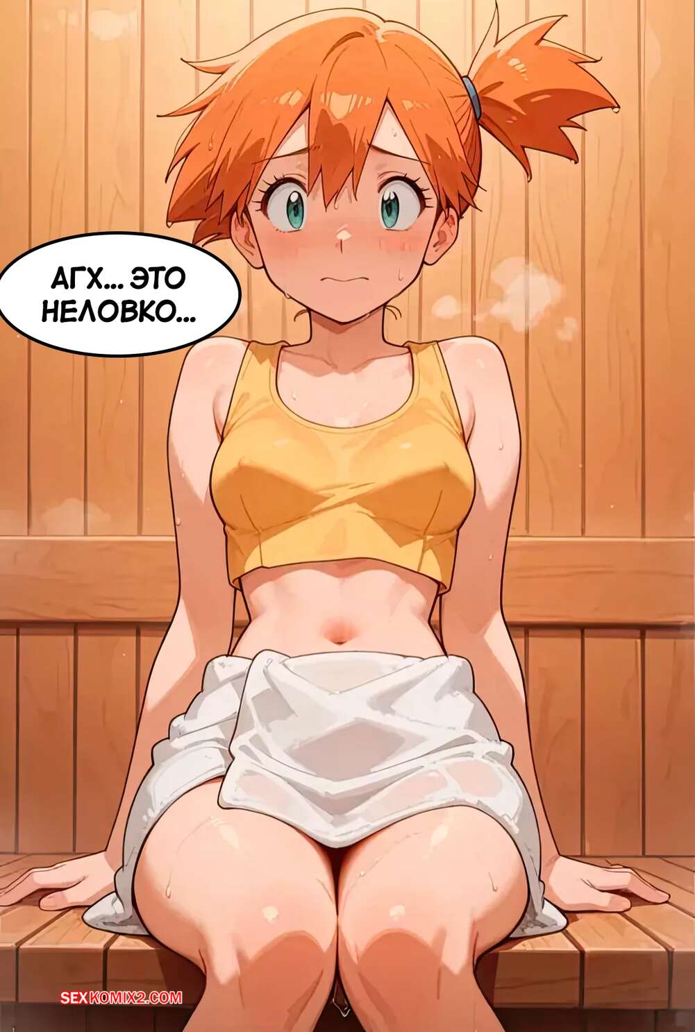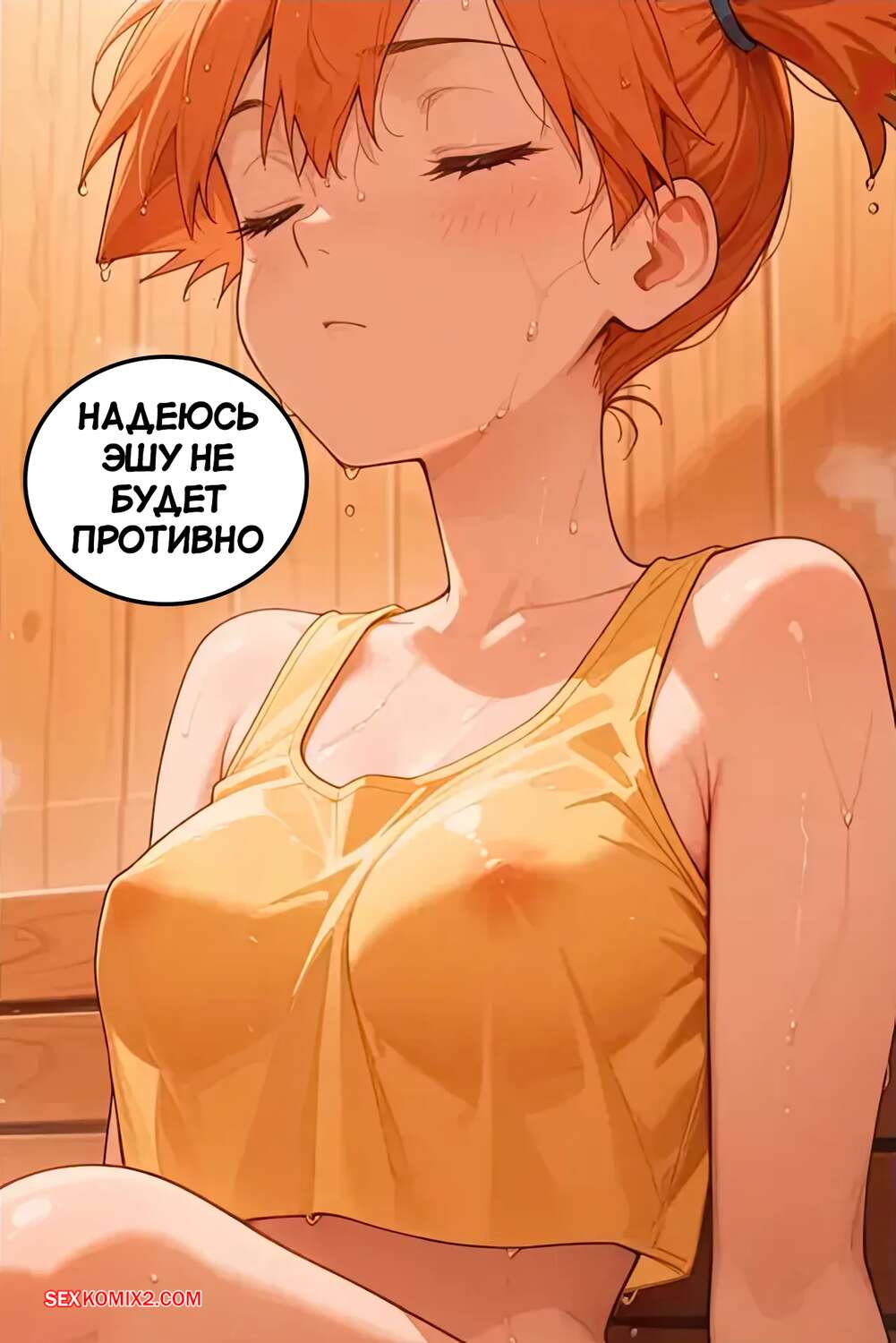 Порно комикс Pokemon. Перегрев. Overheat. Scarlet Meow Рыжая красотка решила расслабиться в бане со своим дружком. Девушка увидела стояк парня и сильно возбудилась. Он отсосала хуй дружка, после чего дала ему себя хорошенько выебать.