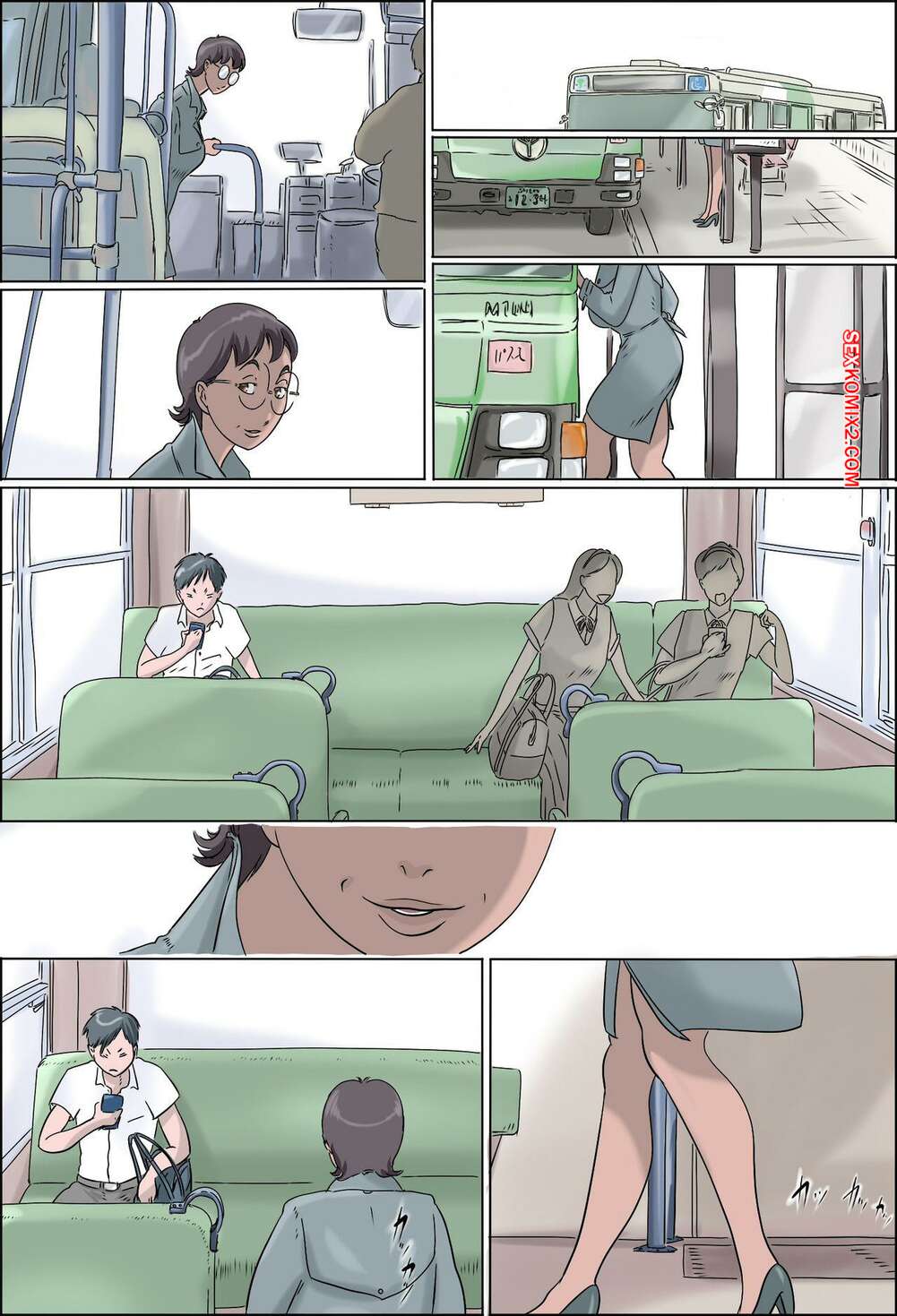 Порно комикс Извращенка домохозяйка 3. zenmai kourogi Извращенная милфа зашла в автобус в одном пальто на голое тело. Там она соблазнила юного парня и стала сосать его член, после чего дала ему себя хорошенько выебать.