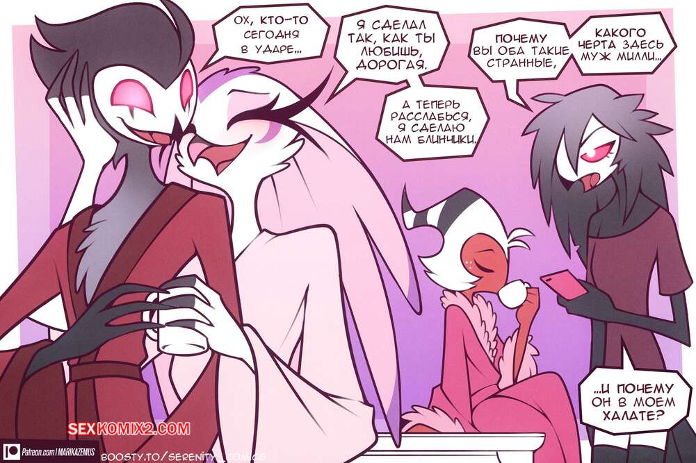 Порно комикс Helluva Boss. Мини Комикс про Мокси и Стеллу. Marik Azemus Мокси пришел с цветами к Стелле и девушка не смогла устоять. Она разделась и раздвинула ножки перед парнем, после чего дала ему хорошенько выебать свою пизденку.
