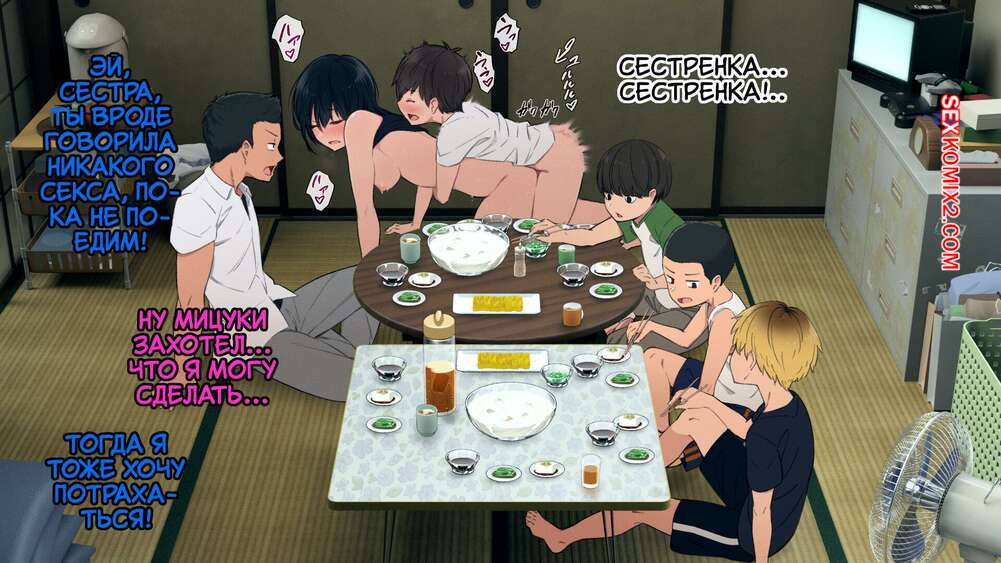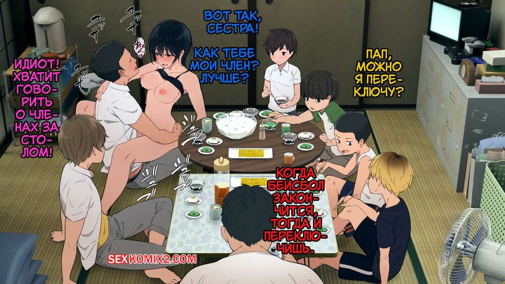 Порно комикс Глупые обстоятельства одной многодетной семьи. Часть 7. Kemuri Haku Молодые парни раздели свою горячую сестренку и стали ее трахать во все дырочки. Детей за этим делом спалил отец семейства и решил тоже воспользоваться дырочками своей дочери.