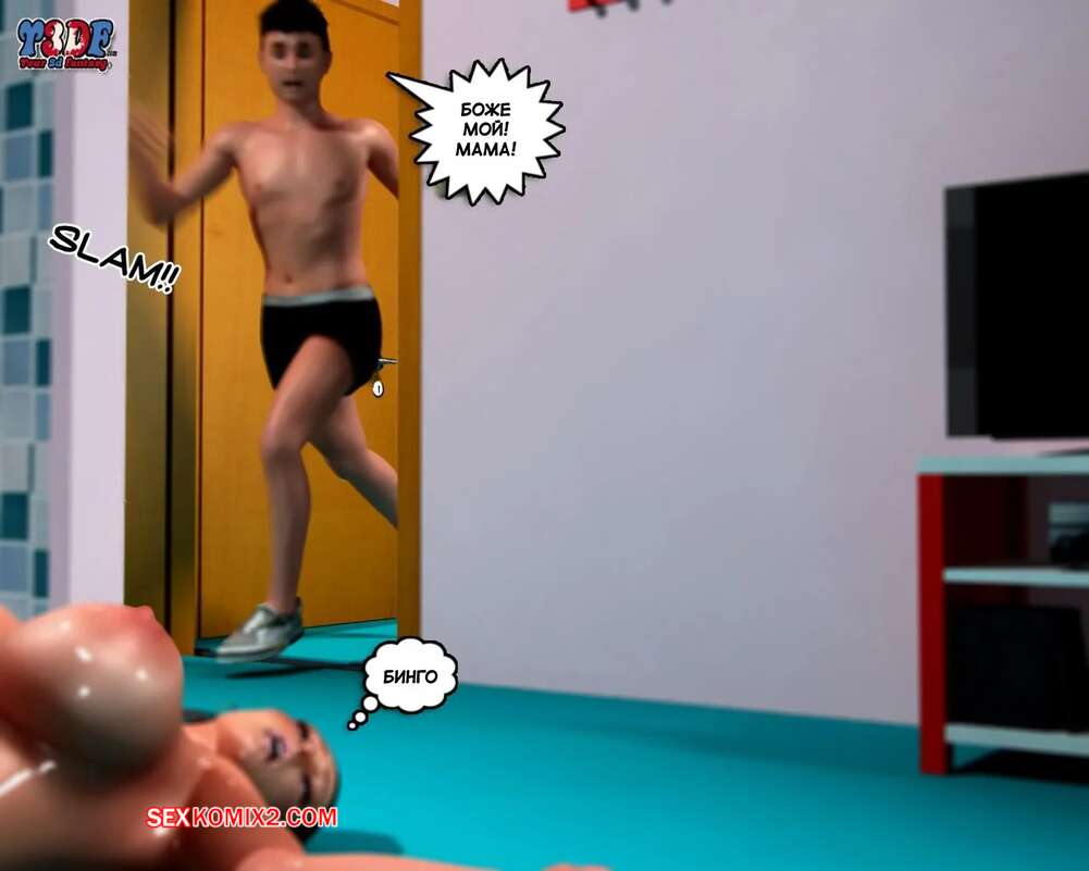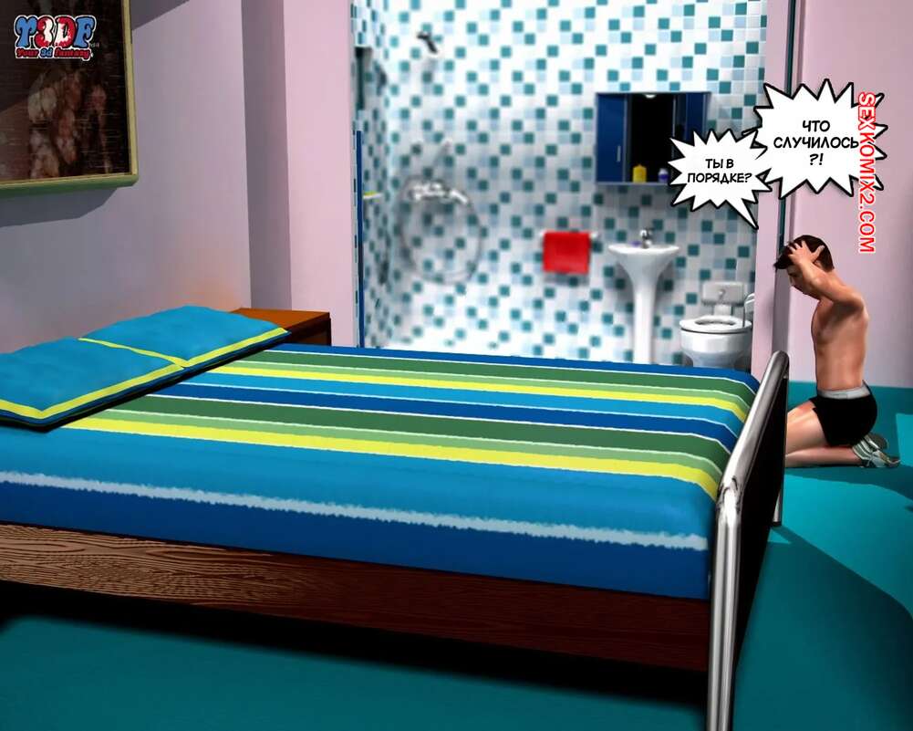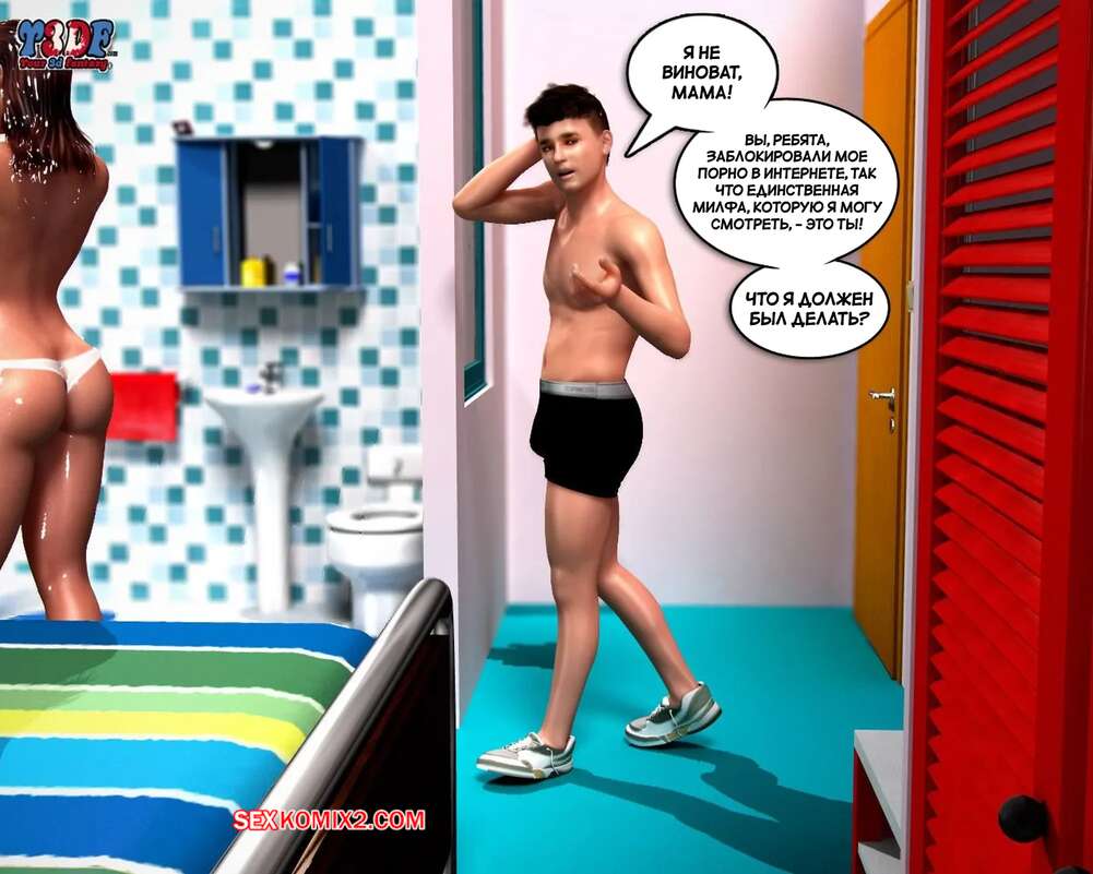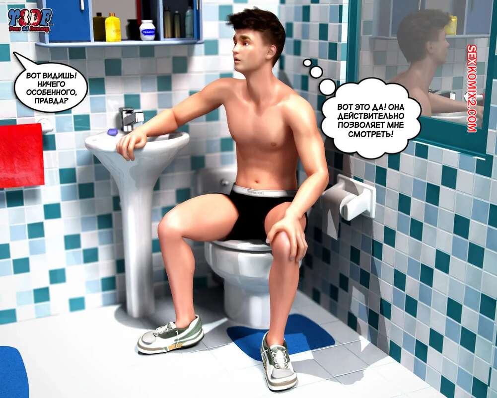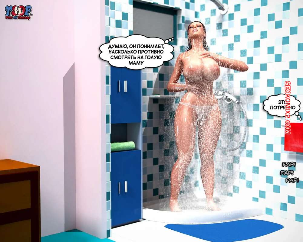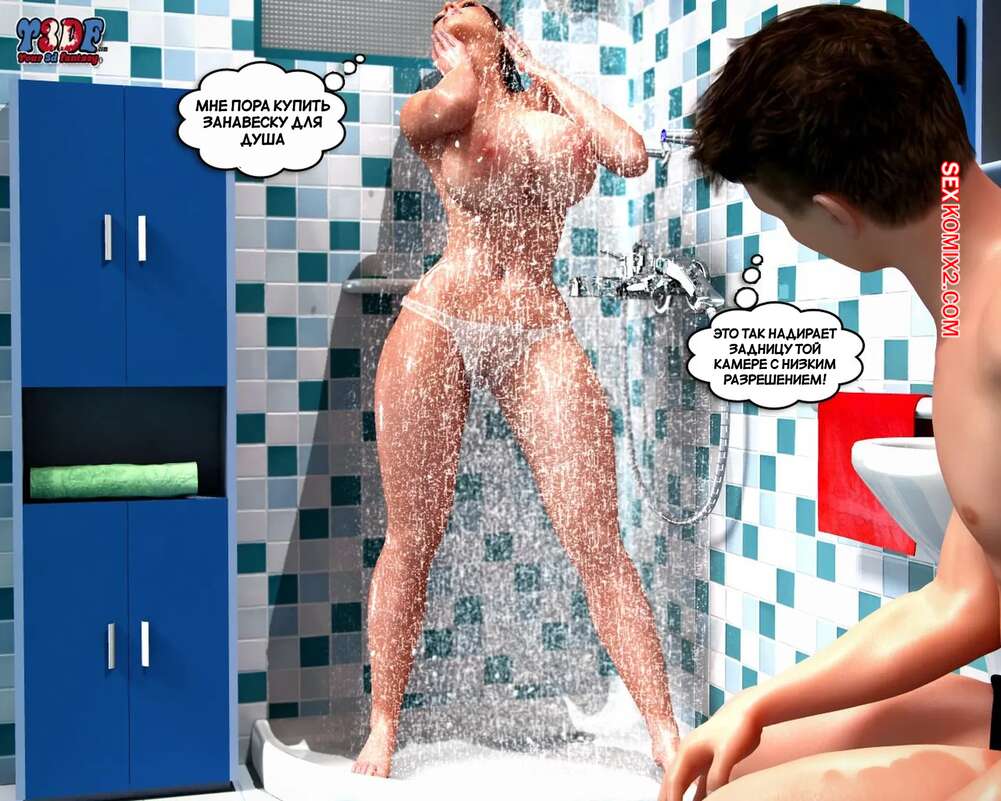 Порно комикс Сломлена. Часть 1. Busted. Y3DF. Горячая милфа принимала душ, а ее сын наблюдал за ней через скрытую камеру и дрочил член. Красотка упала и парень побежал ей помогать. Красотка встала на колени и отсосала хуй сына, после чего он кончил ей на лицо.