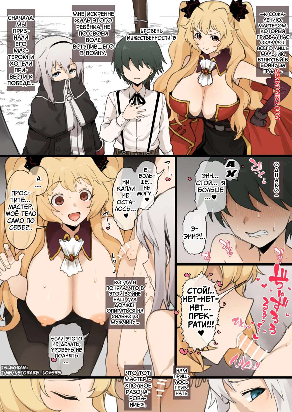 Порно комикс Fate Grand Order. Работы за Сентябрь и Октябрь 2024. Terasu MC Горячие красотки были поражены большим хуем парня и не смогли устоять. Они разделись и отсосали член парня, после чего раздвинули ножки и дали себя выебать.