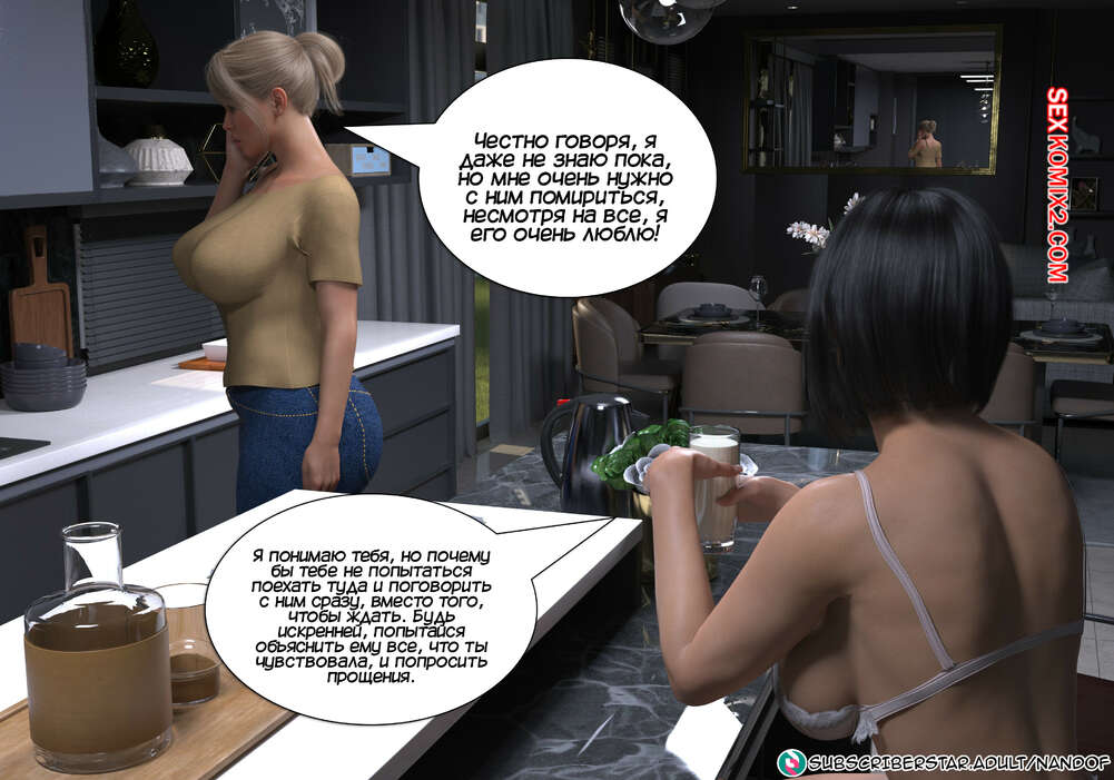 Порно комикс Запретное соблазнение. Часть 4. Forbidden Seduction. NandoF Бренда все еще поражена тем, что увидела, как ее сестренка трахалась с сыном. Утром они решили это обсудить и брюнеточка дала совет Софи, как ей следует поступить со своим мужем.