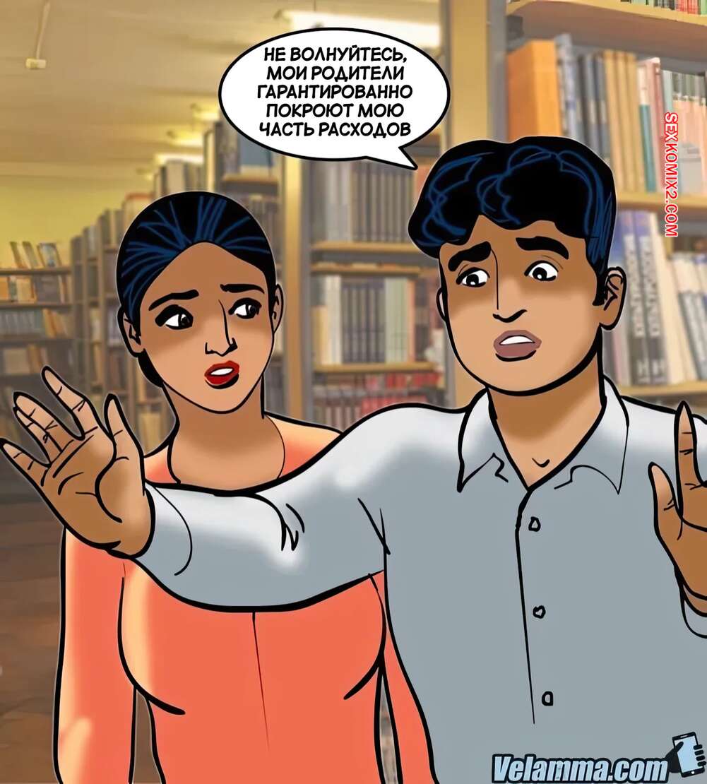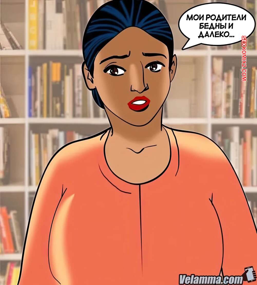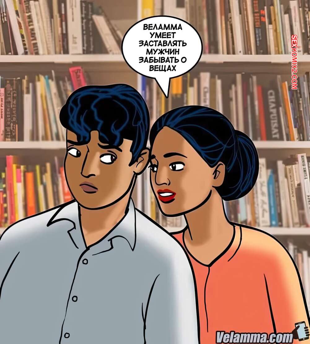Порно комикс Веламма. Часть 70. Velamma. Velamma Горячая милфа Веламма пришла в библиотеку, где на нее положил глаз молодой парень. Он раздел красотку и дал ей отсосать свой большой хуй, после чего как следует выебал ее пизденку.