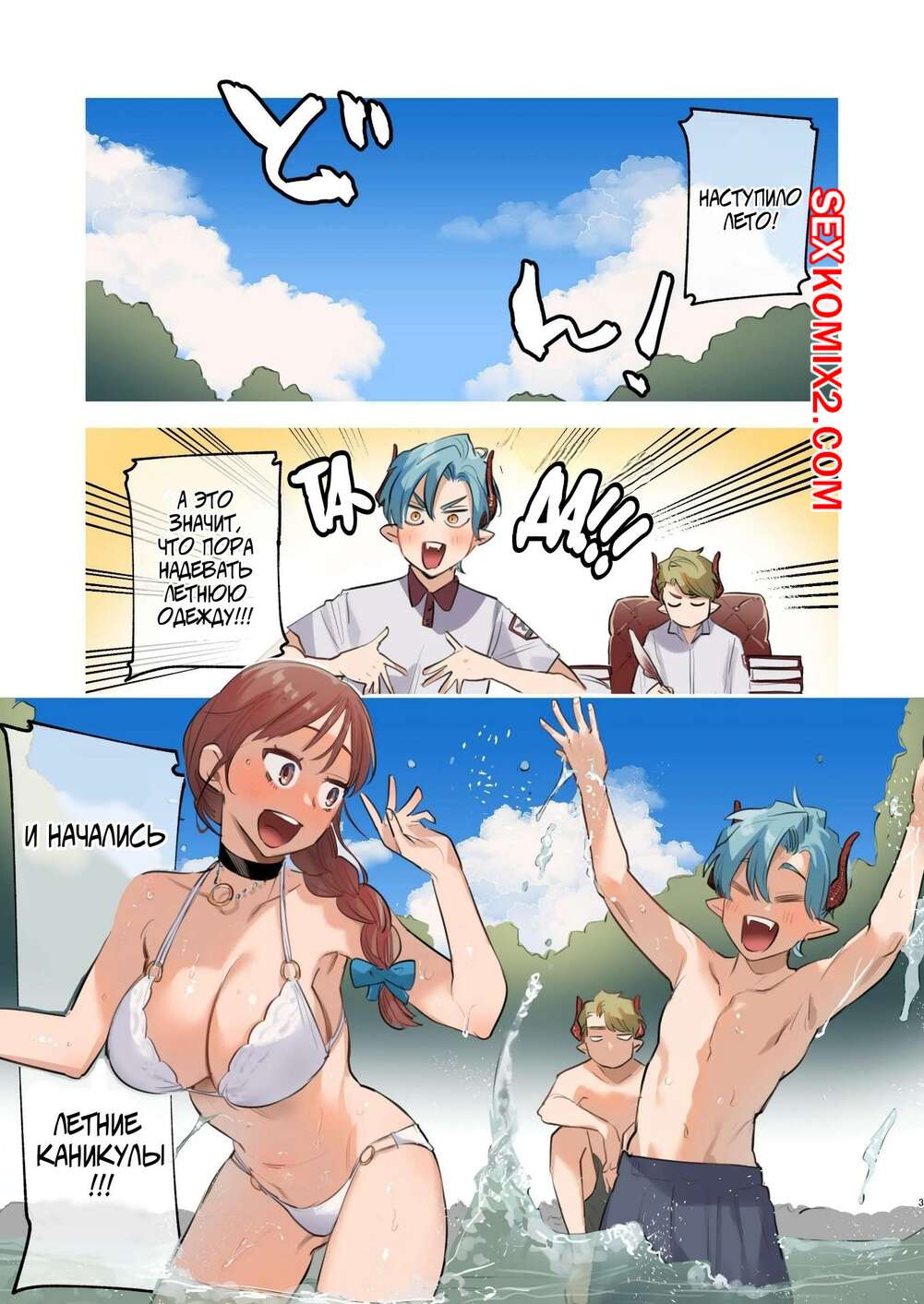 Порно комикс Летний отдых с близнецами драконами. ONIBEN Katze Парень был очень возбужден и решил повеселиться со своей горячей подругой. Он раздел красотку и стал ласкать ее пизденку пальцами, после чего хорошенько ее выебал.