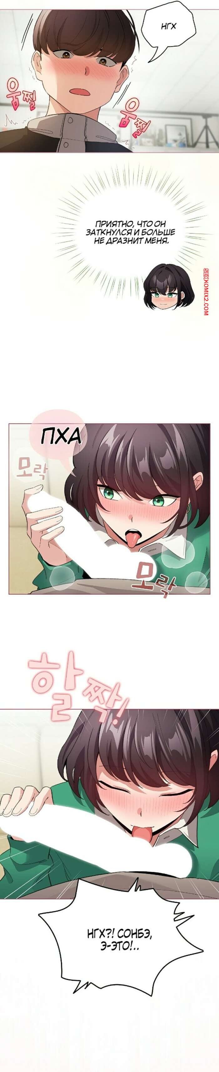 Порно комикс Стал второстепенным персонажем в хентай манхве. Часть 13 и 14 и 15 Горячая брюнетка была очень возбуждена и решила повеселиться со своим дружком. Она встала на колени и стала сосать большой хуй парня, желая скорее ощутить его в себе.