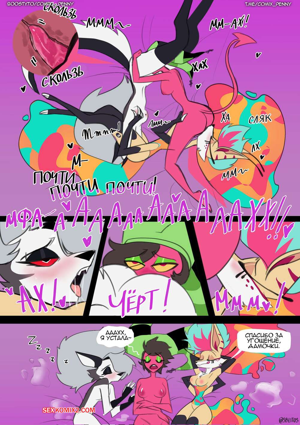 Порно комикс Адский босс. Комикс про Би, Луну и суккуба. Sblitos Горячие подруги были очень возбуждены и решили повеселиться. Они разделись и стали ласкать друг дружку, после чего занялись страстной лесбийской еблей, получив огромное удовольствие.