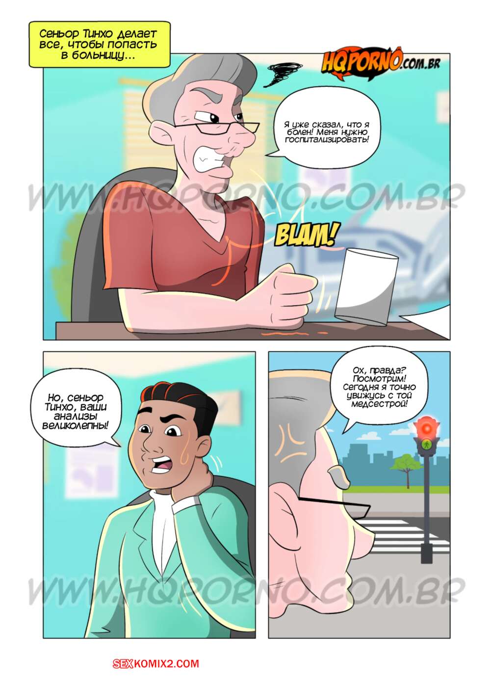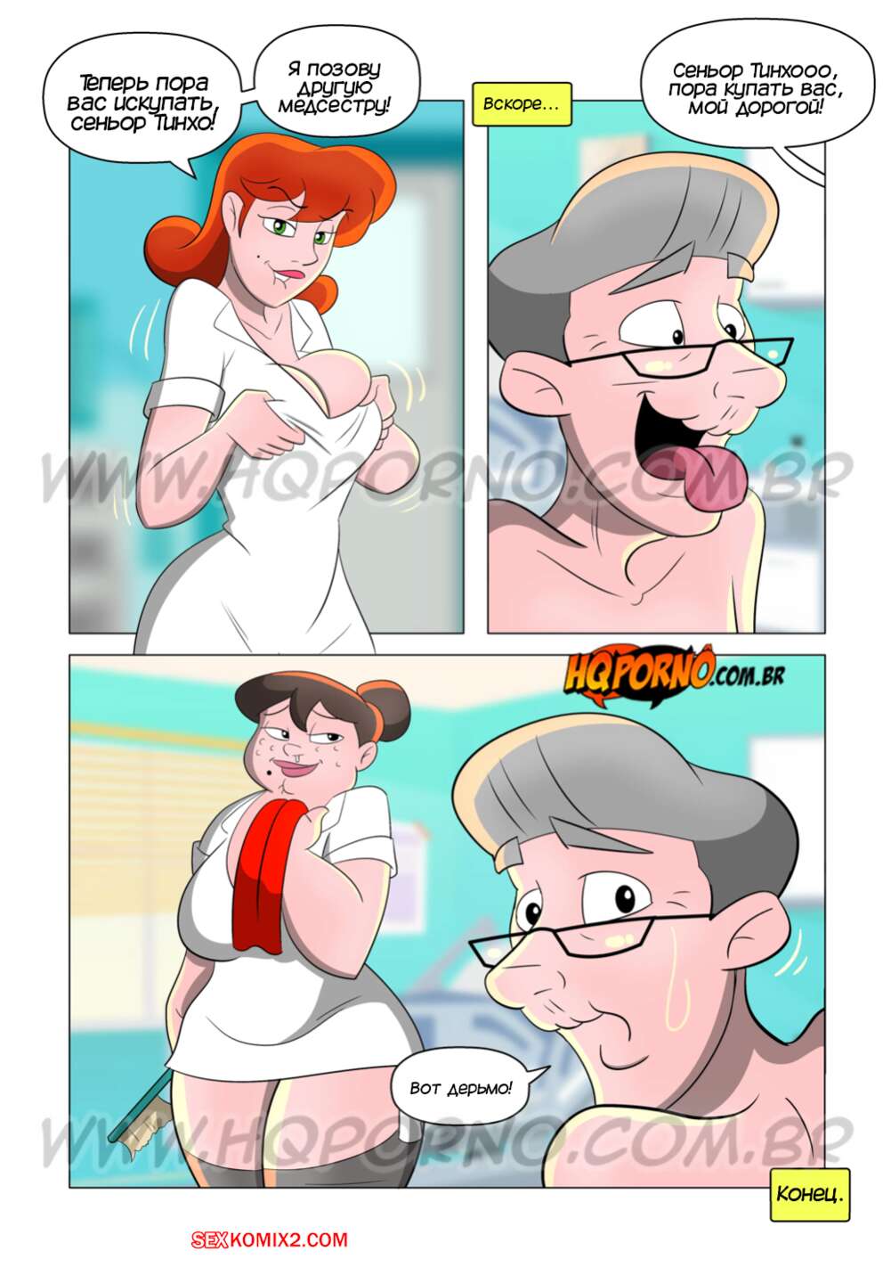 Порно комикс Дедушка Тадала. Часть 2. Vovo Tadala. HQPorno Старик Тадала специально бросился под машину, чтобы попасть в больницу и остаться наедине с горячей медсестрой. Он выпил виагру и соблазнил ее большим хуем, после чего хорошенько выебал красотку и заполни ее спермой.