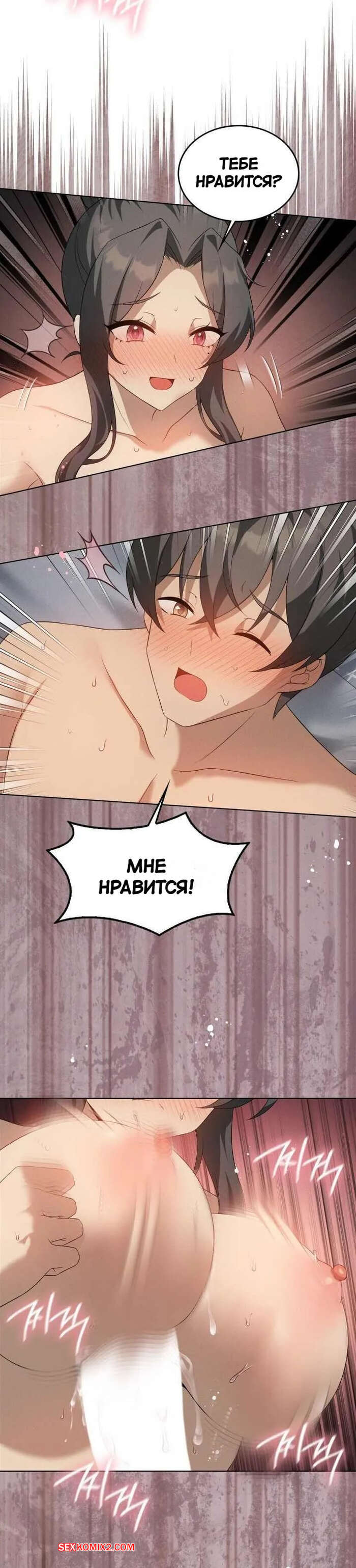 Порно комикс Повышайте уровень, пока не удовлетворитесь. Часть 57 Горячая брюнетка подрочила член парня ножками и возбудила его. Красотка сняла трусики и оседлала хуй парня, после чего дала ему себя хорошенько выебать.