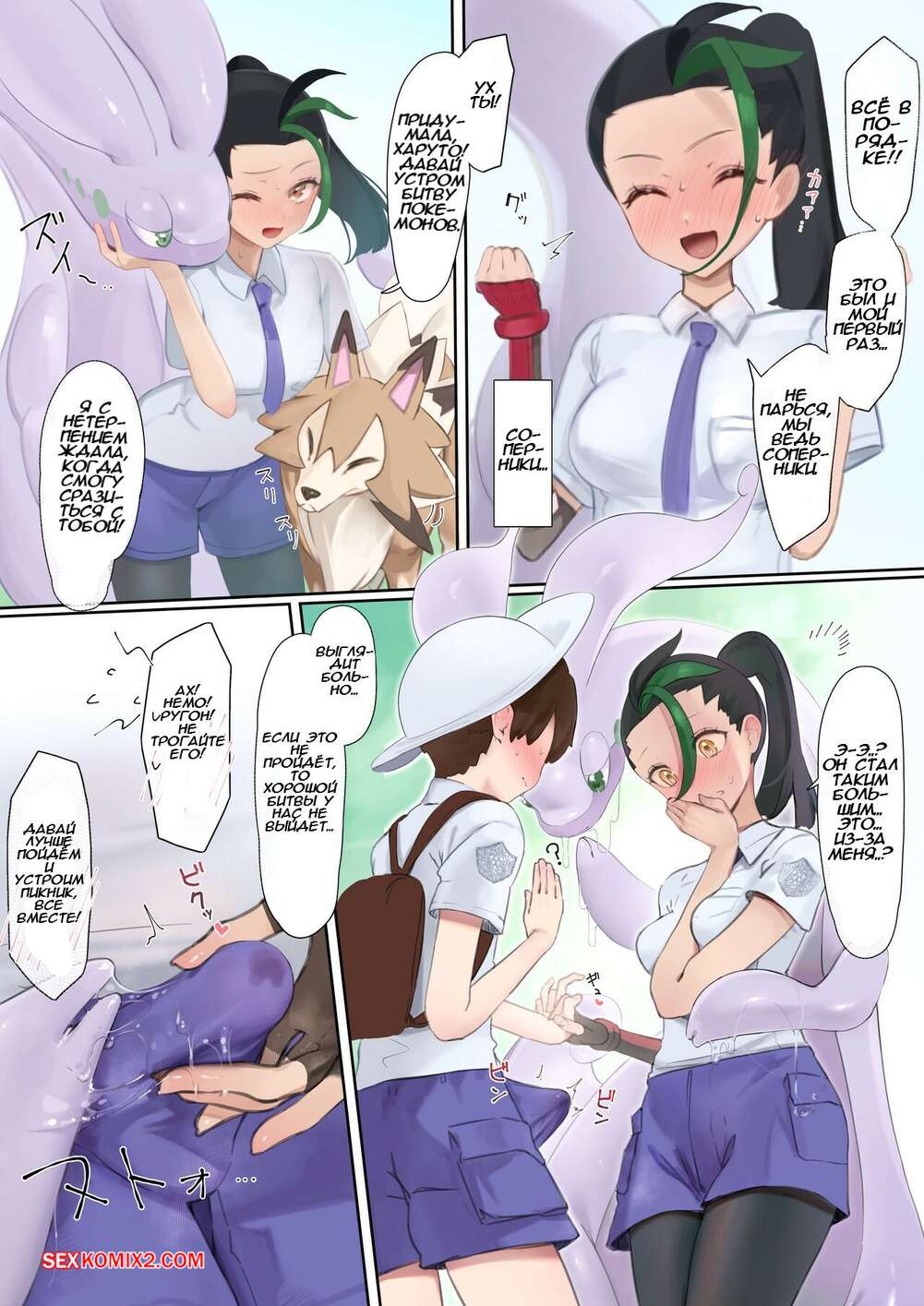 Порно комикс Pokemon. Перед битвой. Before the Match. Neko No Youchuu Девушка решила расслабиться перед битвой покемонов. Она встала на колени перед парнем и отсосала его большой хуй, после чего дала ему выебать свою пизденку и кончить в нее.