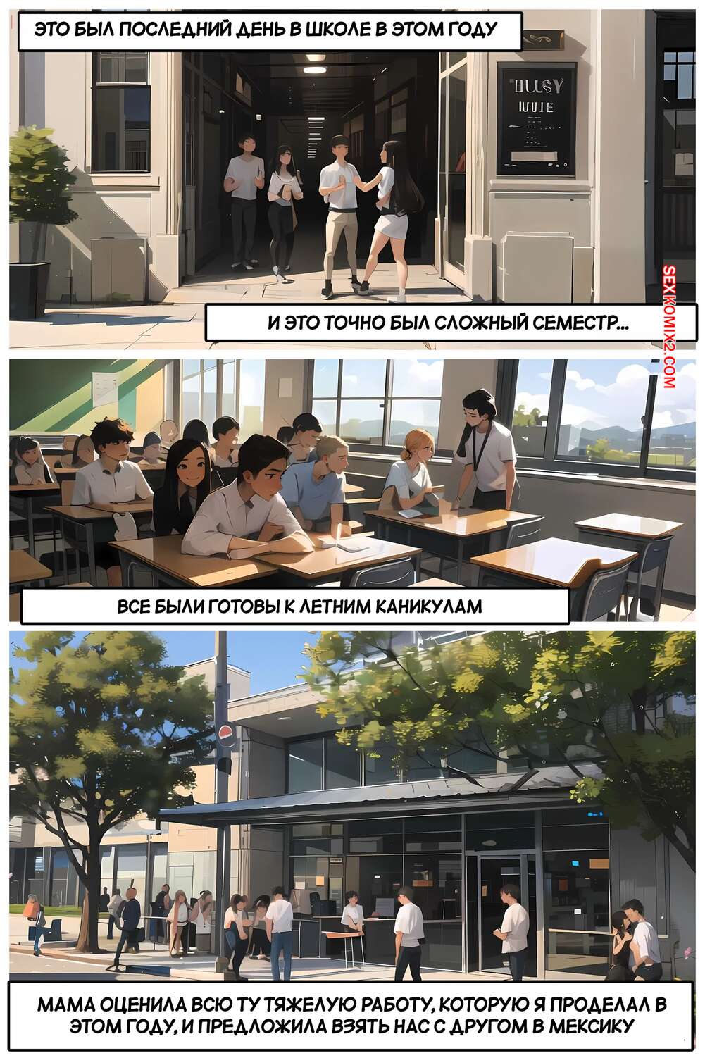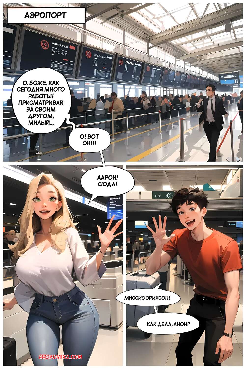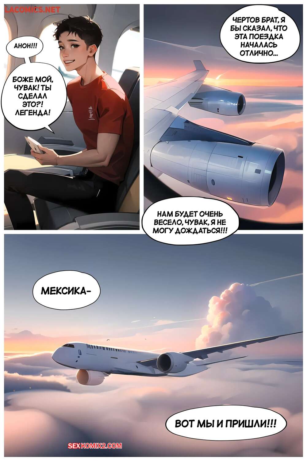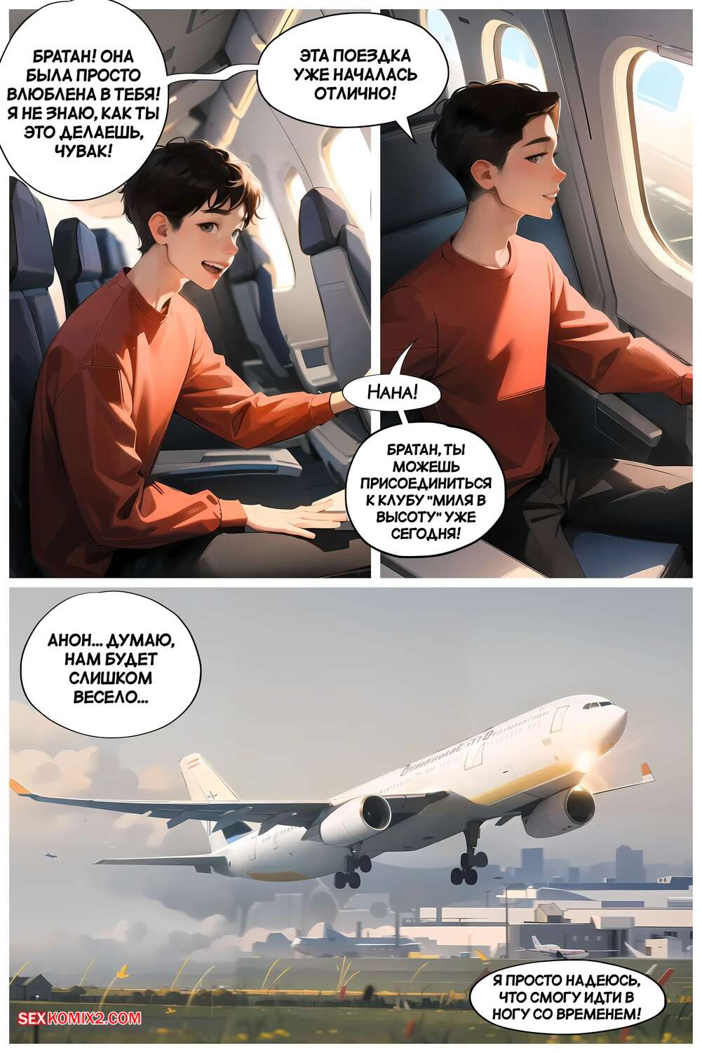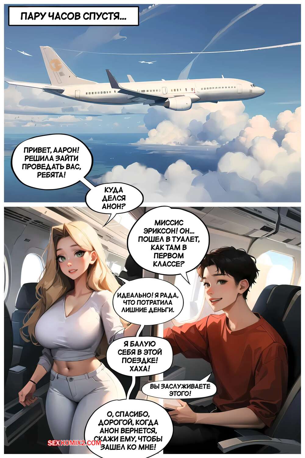 Порно комикс Летние каникулы Анона. Часть 1. Anons Summer Vacation. Kate Sketches Парнишка отправился на каникулы со своей горячей мамкой. В самолете перед ним сидела сексуальная брюнетка, которая стала соблазнять парня и даже дала ему себя трахнуть.