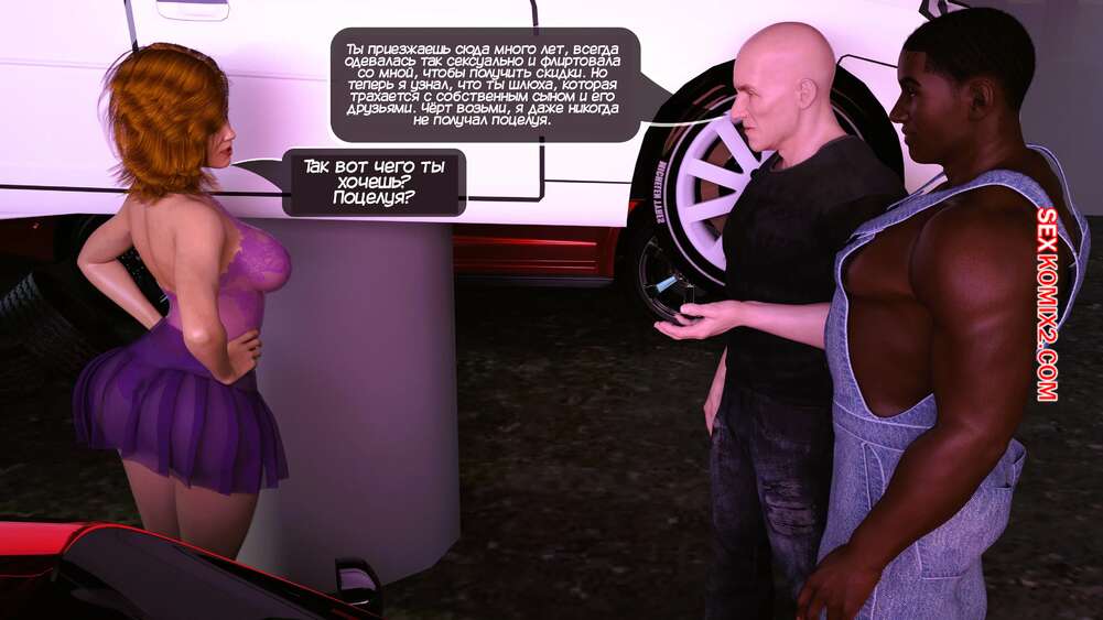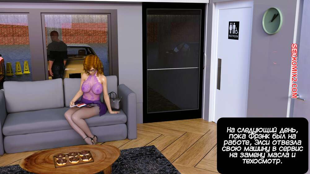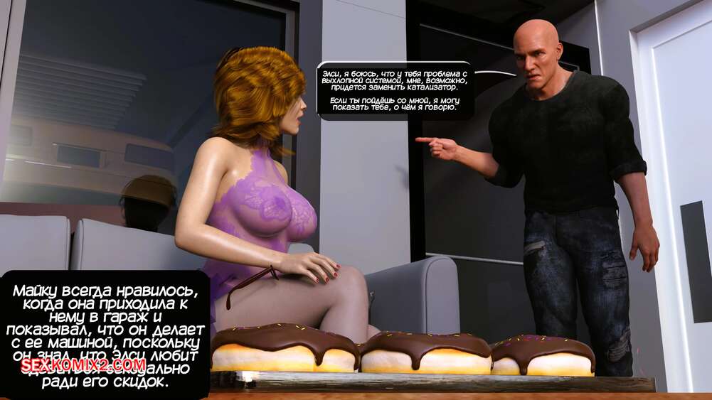 Порно комикс Тетя Элси. Часть 7. Aunt Elsie. Mature3DComics Горячая милфа Элси отправилась в автосервис, чтобы обслужить машину. Там ей решили воспользоваться два парня, которые раздели красотку и стали ласкать ее, желая выебать девушку.