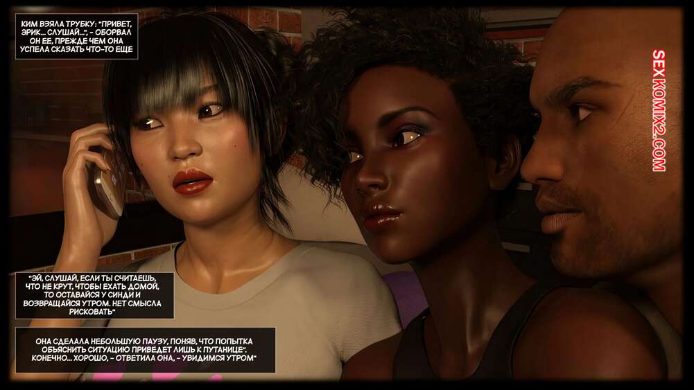 Порно комикс Черная метка. Ким. Blackmaled. Singles. Kim. Sexy3DComics Горячая красотка Ким познакомилась с темнокожей парой и они предложили ей повеселиться. Все трое разделись и стали ласкать друг друга, после чего устроили групповую еблю.