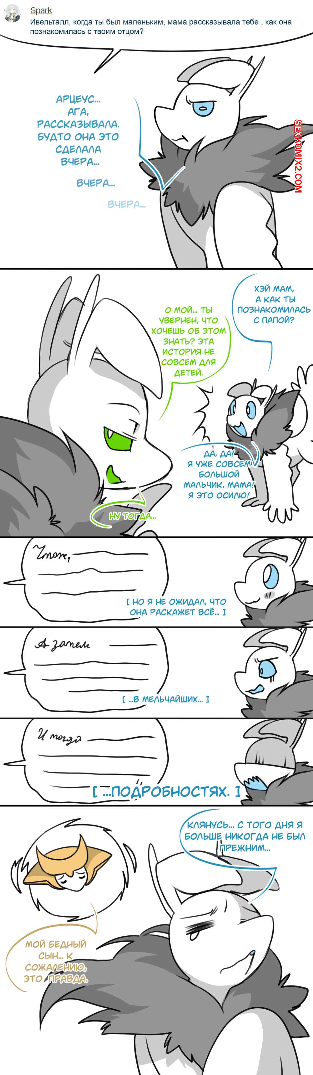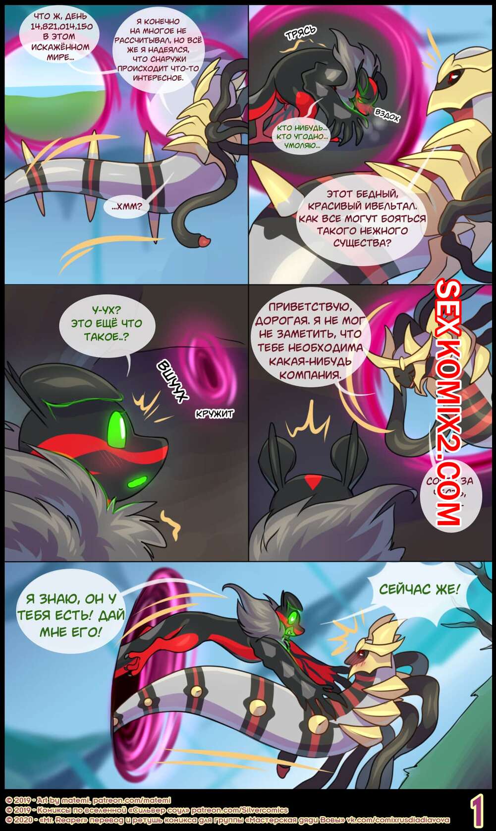 Порно комикс Покемоны. Сильвер Соул. Часть 6.5. Появление рыцаря рассвета Дракон летал по мира, ища через порталы самки существ, которых он мог бы выебать.К счастью ему сразу же попалась такая самочка, которая сама набросилась с невероятной жаждой члена..