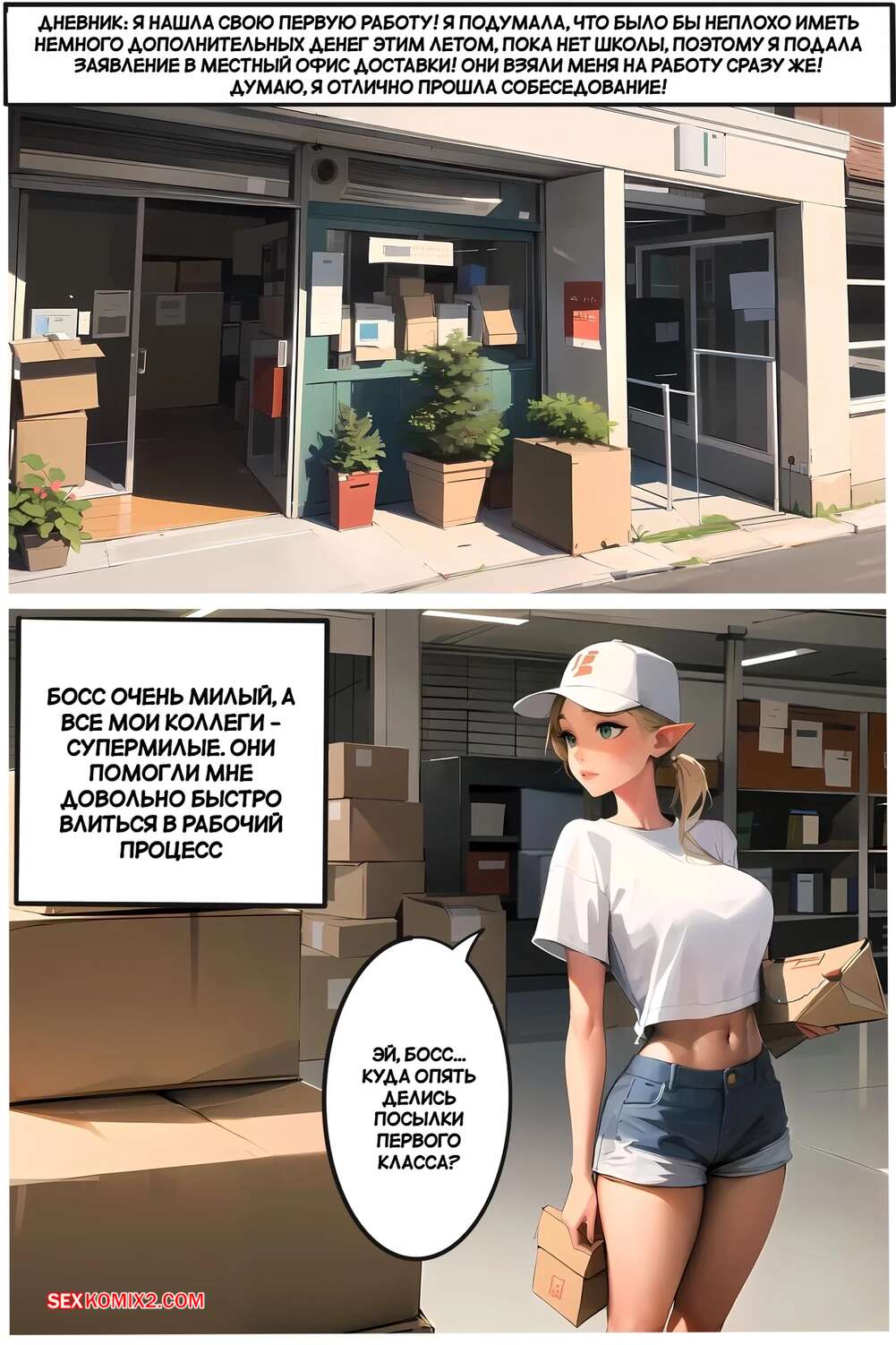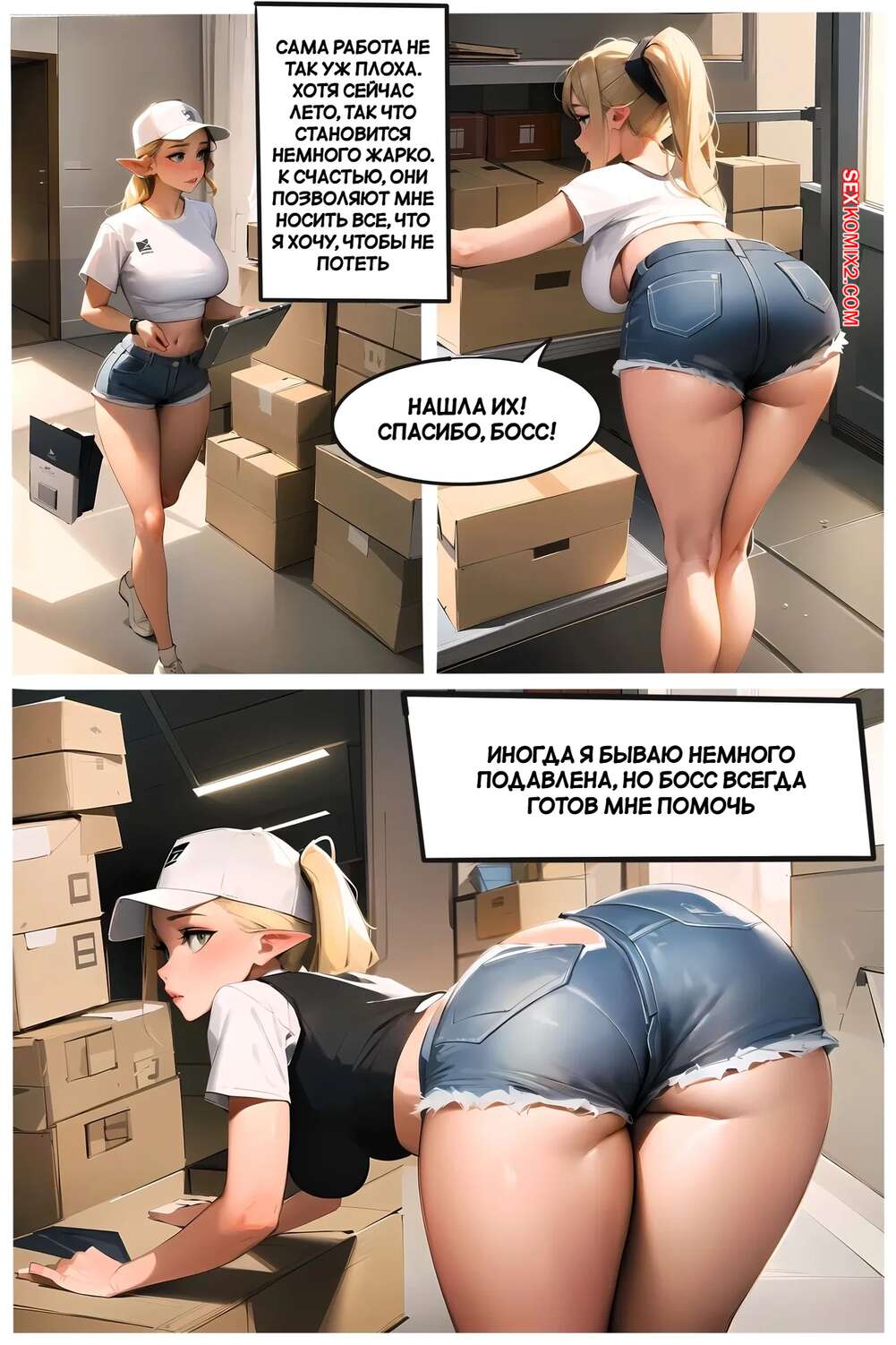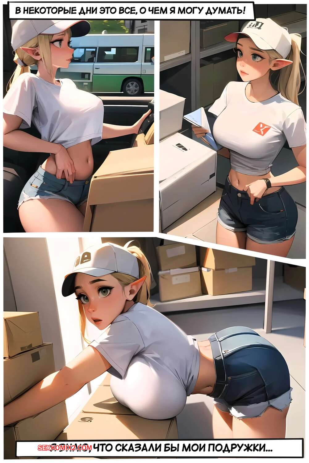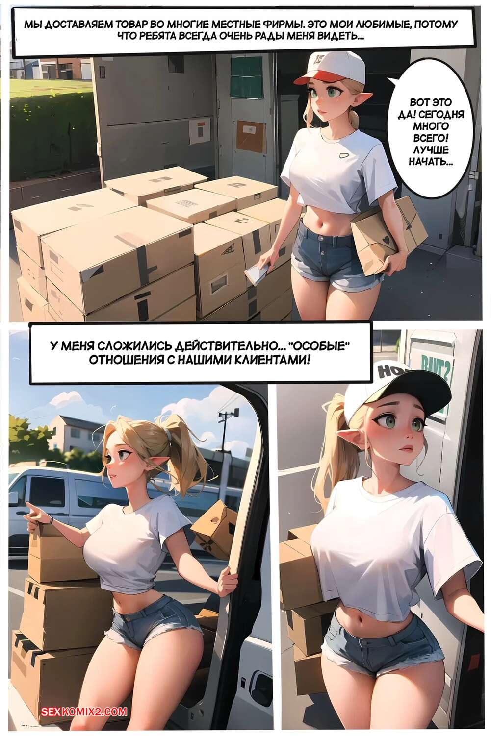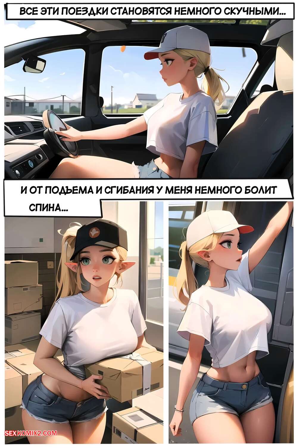 Порно комикс Летняя работа Клэр. Claires Summer Job. Kate Sketches. Горячая блондинка Клэр подрабатывает курьером летом. Она доставляет посылки клиентам, а также соблазняет их и сосет хуи парней, после чего дает им себя выебать.
