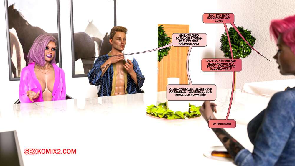Порно комикс Новые соседи. Часть 33. The New Neighbors. Antalore42 Лили и Мейсон отправились вместе в клуб, чтобы отдохнуть. Они выпили, после чего отправились в туалет, где девушка оседлала хуй парня и дала ему себя как следует выебать.