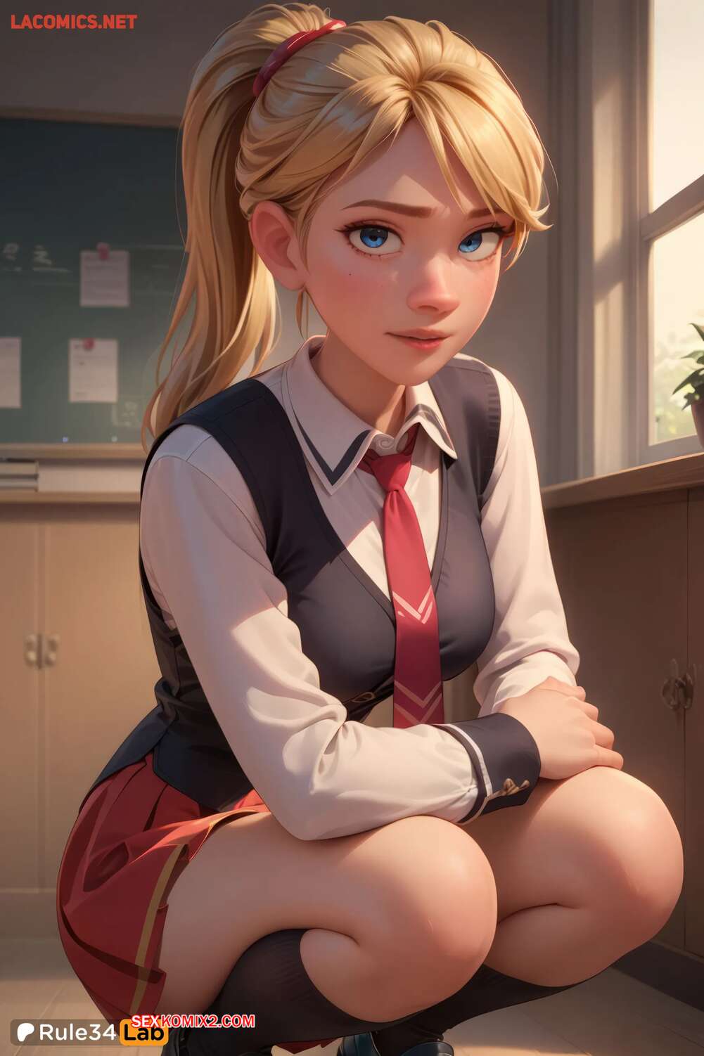 Порно комикс Riley Andersen in a Bible Black Uniform. Rule34Lab Горячая блондинка очень возбуждена и хочет трахаться. Она раздвигает ножки и ласкает свою пизденку, после чего сосет член парня и дает ему себя выебать.