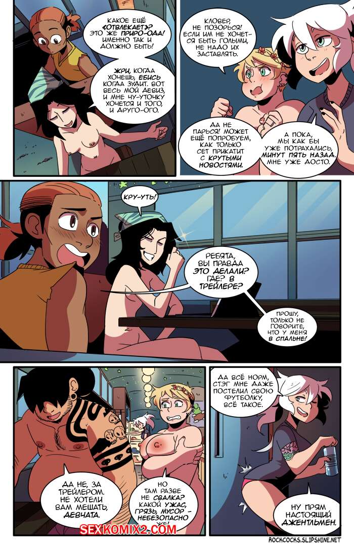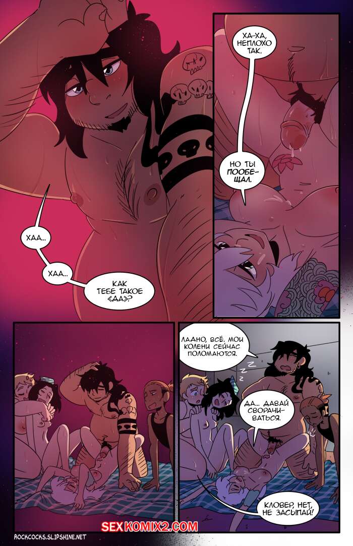 Порно комикс Рок хуй. The Rock Cocks. Часть 11. Облом В перерыве от своих музыкальных дел ребята искали способ хорошенько повеселиться. Две парочки нашли его и решили устроить парную еблю любуясь тем, как ебутся другие. Пока они ебались, за ними следил их дружок, наслаждаясь и подрачивая свой хуй, будучи в полном восторге от увиденного.