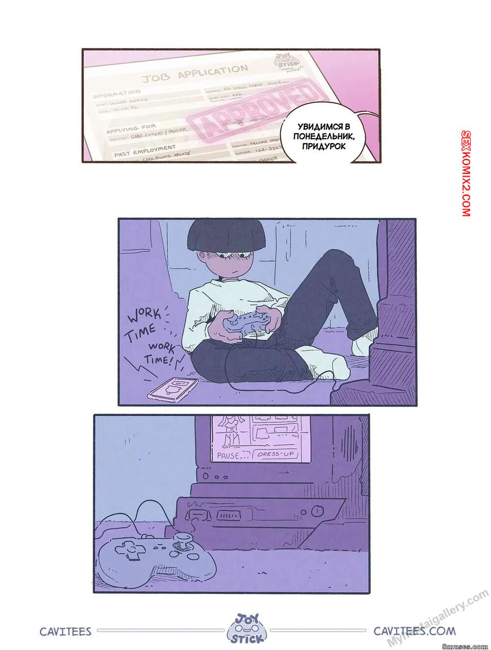 Порно комикс Джойстик. Часть 1. Joy Stick. Cavitees. Юный парень Оливер купил себе новую игру и поспешил ее опробоватьс. На следующий день отправился на работу и заметил, что с его телом происходят изменения и он превращается в девушку.